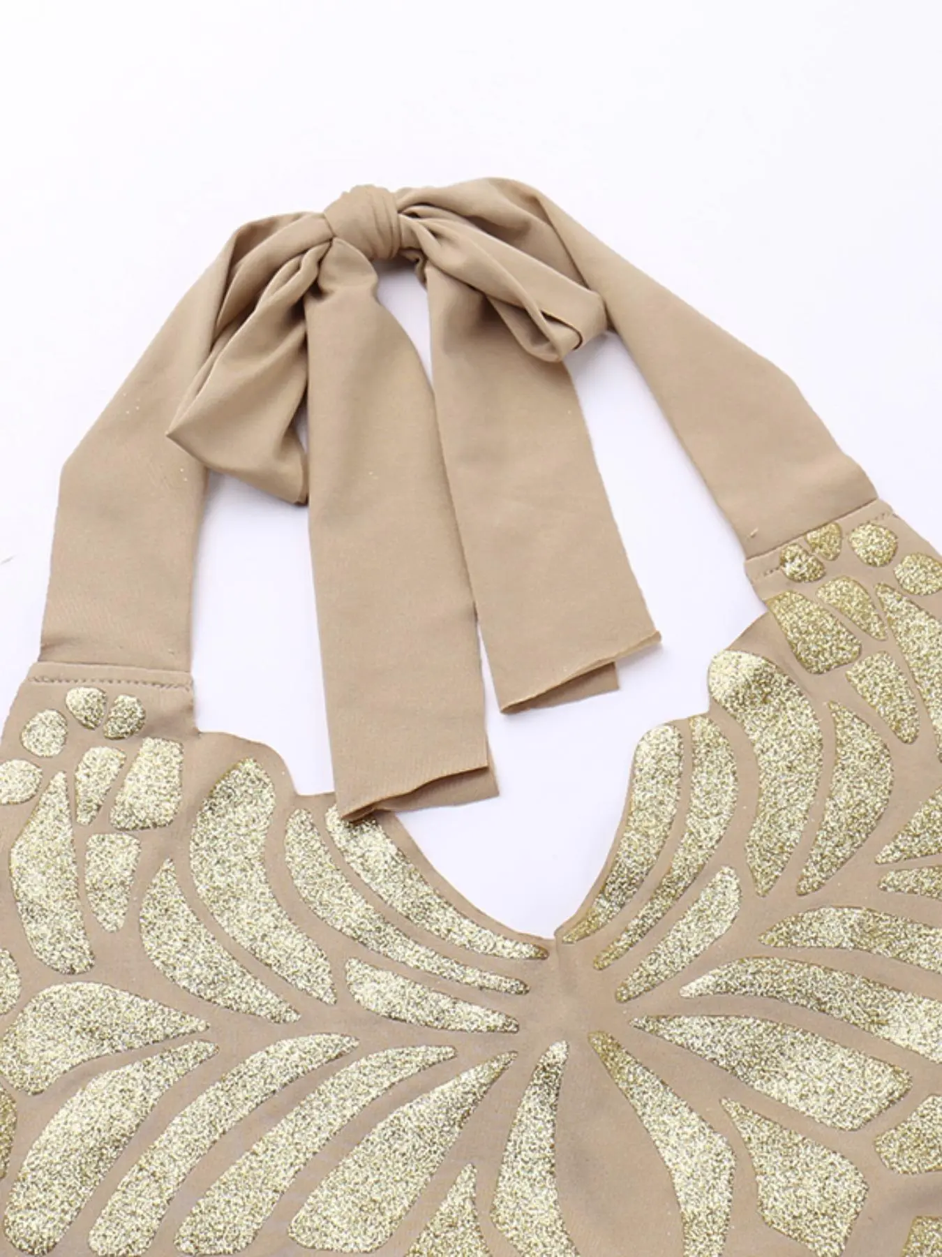 Women's Glitter Butterfly Design Tie Back Halter Crop Top, Fashion Casual Backless Sleeveless Top for Daily Outdoor Wear, Ladies Clothes for All Seasons