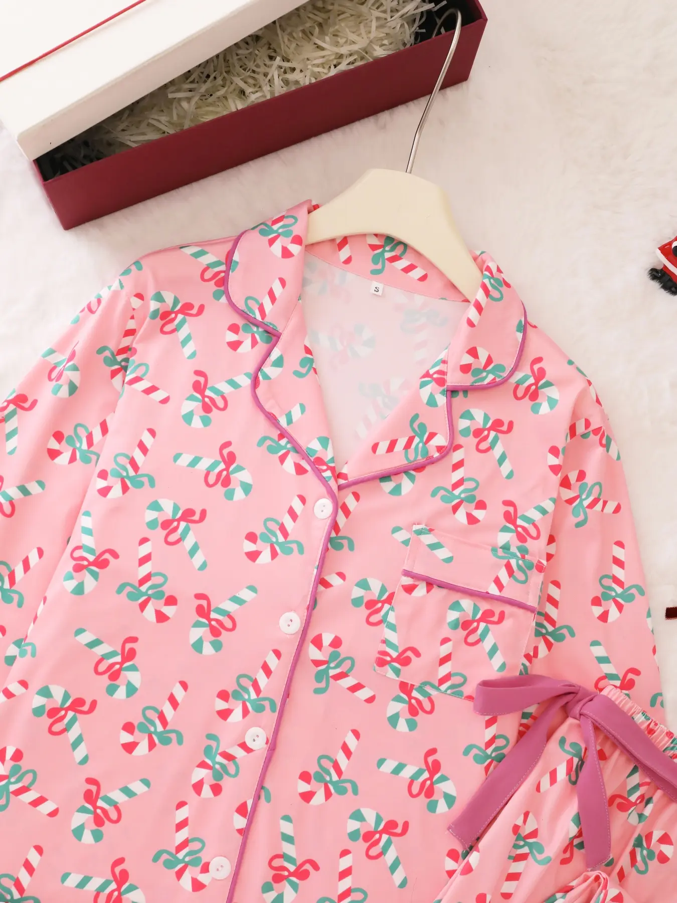 【Charming All Over Print】: Adorned with a delightful candy cane pattern, bringing a festive touch to your loungewear collection for the holiday season.