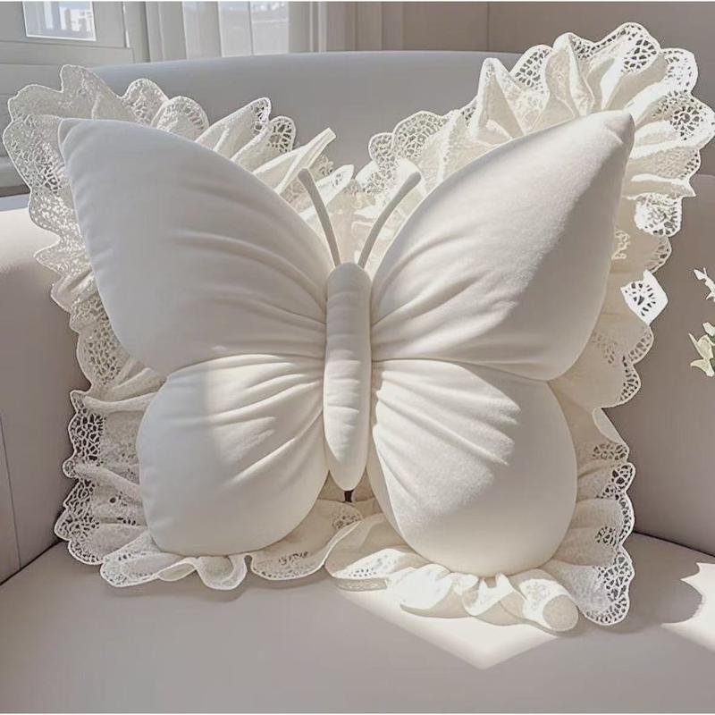 Butterfly-Shaped Lumbar Support Pillow - Soft Floral Decor Bedroom Living Room Office
