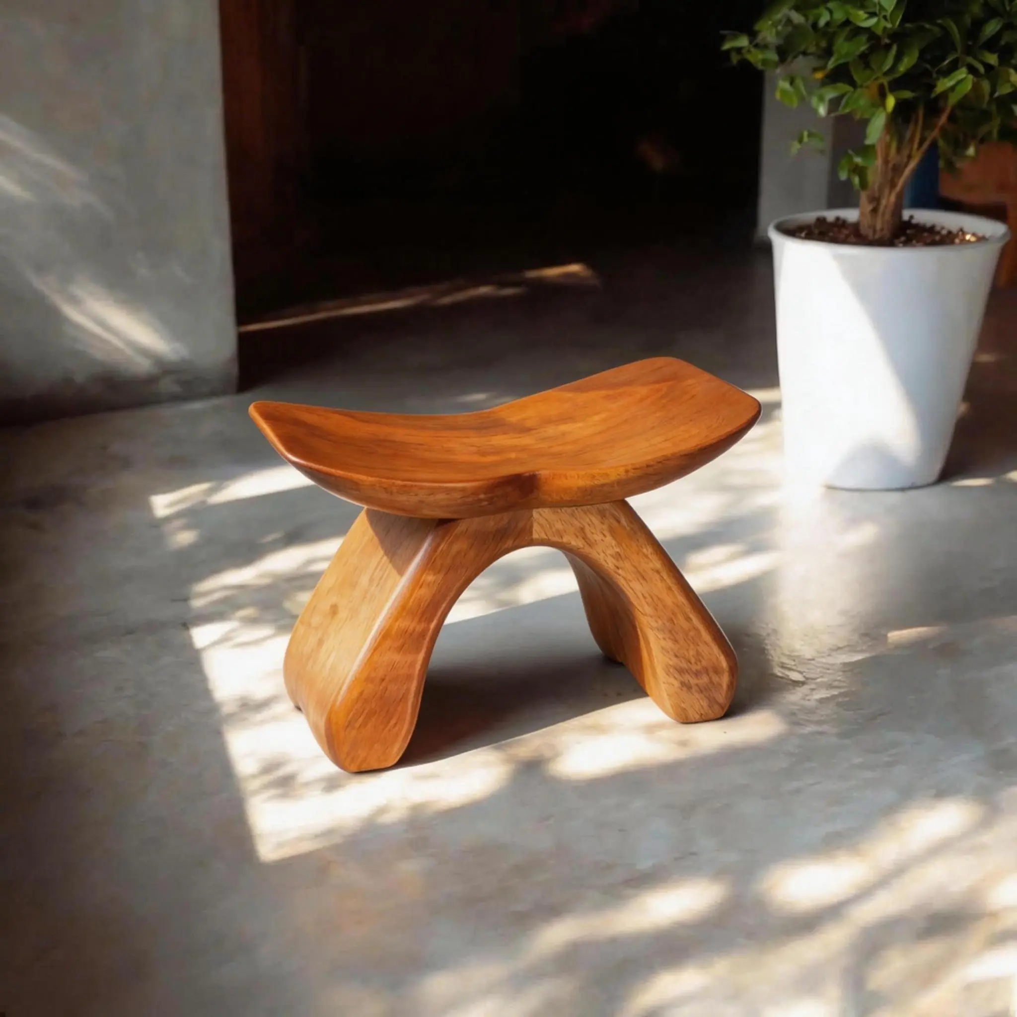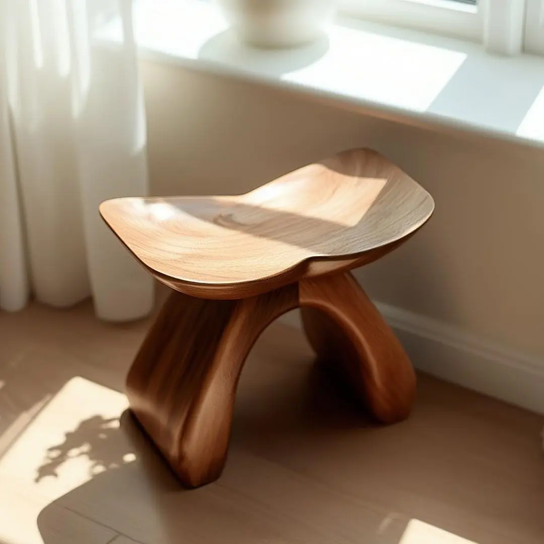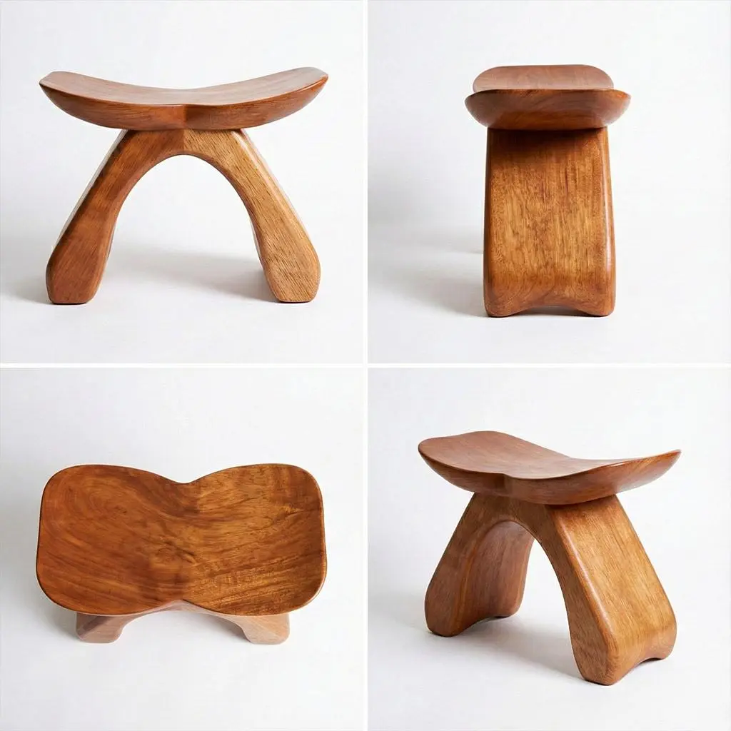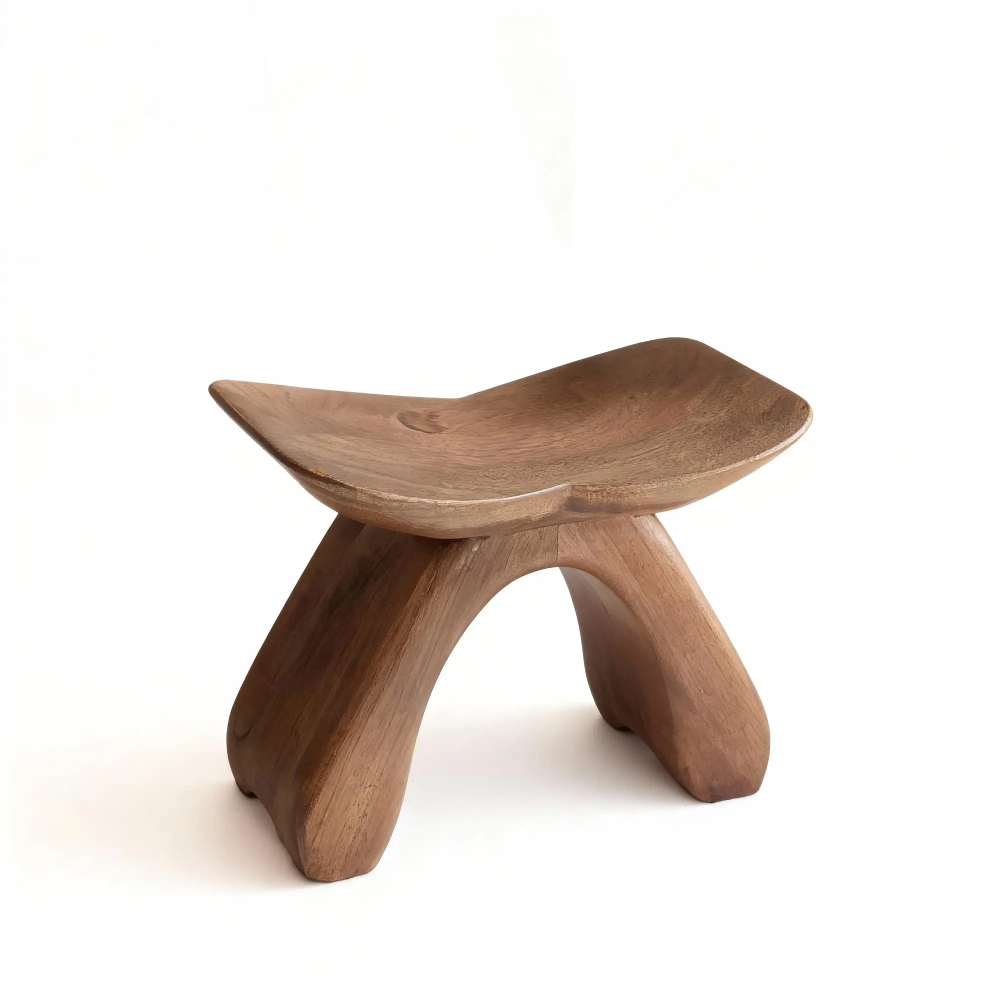Featuring a charming butterfly silhouette, this solid wood stool stands out with curved edges and a hand-polished finish that highlights the natural wood grain, blending artistry and craftsmanship for a unique focal point in any room.