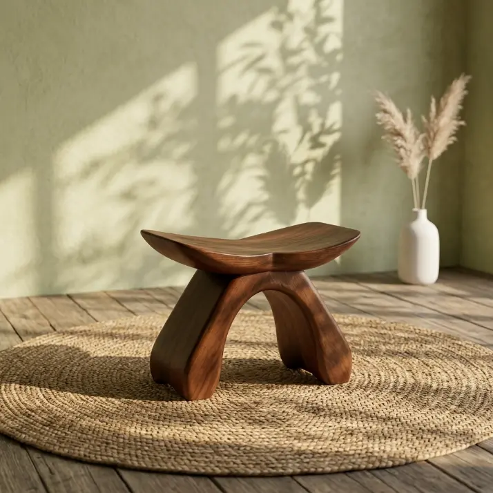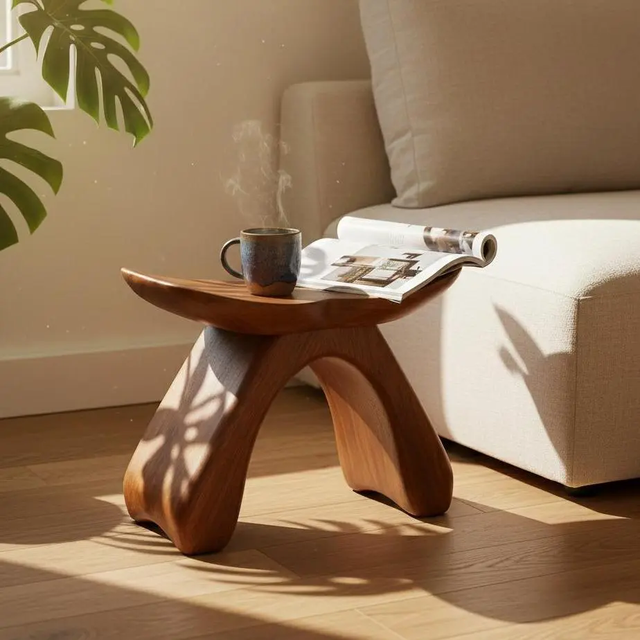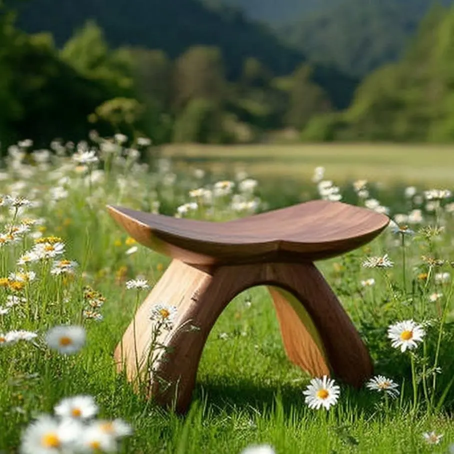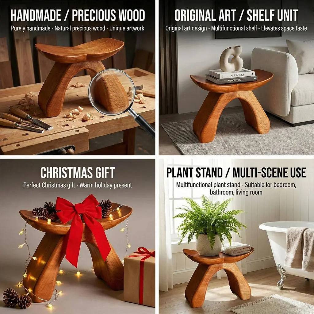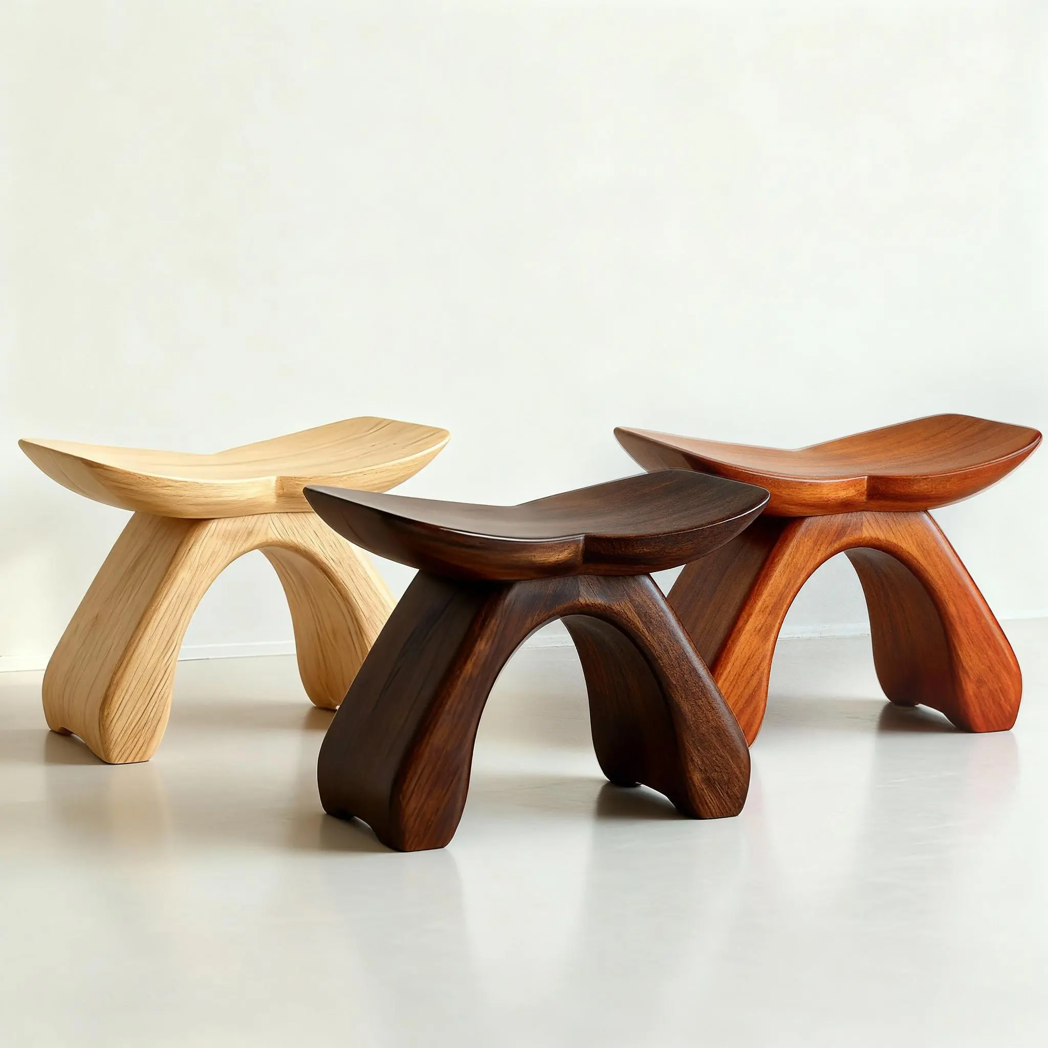 Featuring a charming butterfly silhouette, this solid wood stool stands out with curved edges and a hand-polished finish that highlights the natural wood grain, blending artistry and craftsmanship for a unique focal point in any room.