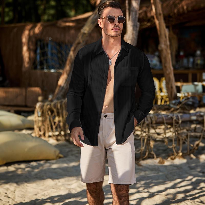 【Features: Men's shirts feature solid colors and a button-down design. The sleeves can be worn as 3/4 length or full length, adding variety to your wardrobe. 】