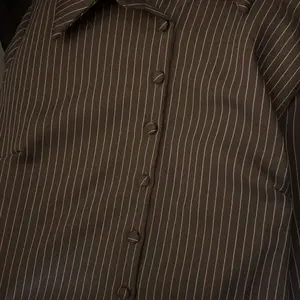 This black pinstriped button-up shirt is sleek and stylish. The vertical stripes elongate the frame, while the wide cuffs and structured fit add a modern, polished touch. Great for both work and smart-casual looks.