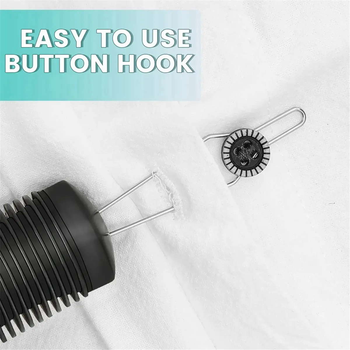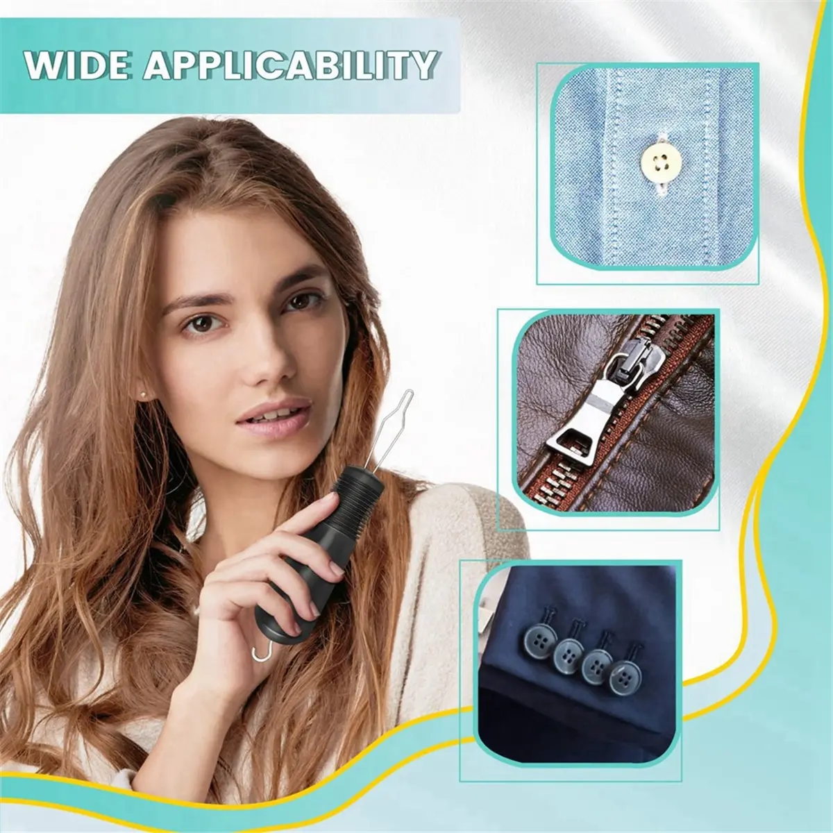 [Help zipper hook]Does button assist tool also work on zippers? That is certainly, the button auxiliary device has a steel zipper hook, easy to pull the zipper with one hand.That is a very good button helper for elderly.