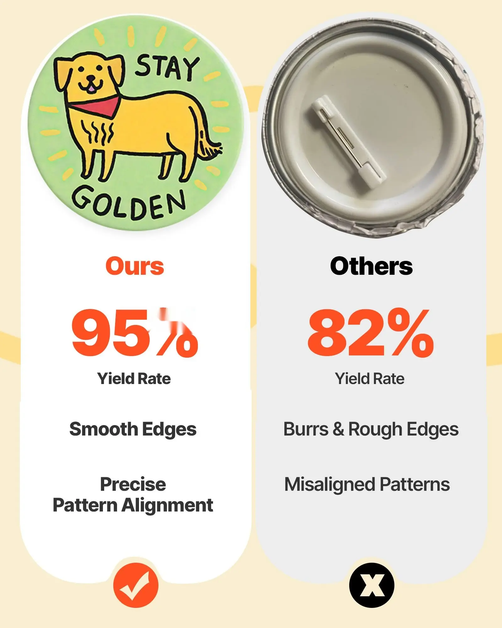·High Success Rate: Precision molds and alignment guides help avoid tilted designs, ensuring ideal outcomes every time. It is recommended to use 127-157g paper (135g performs especially well). Avoid mold shifting while using the button maker machine
