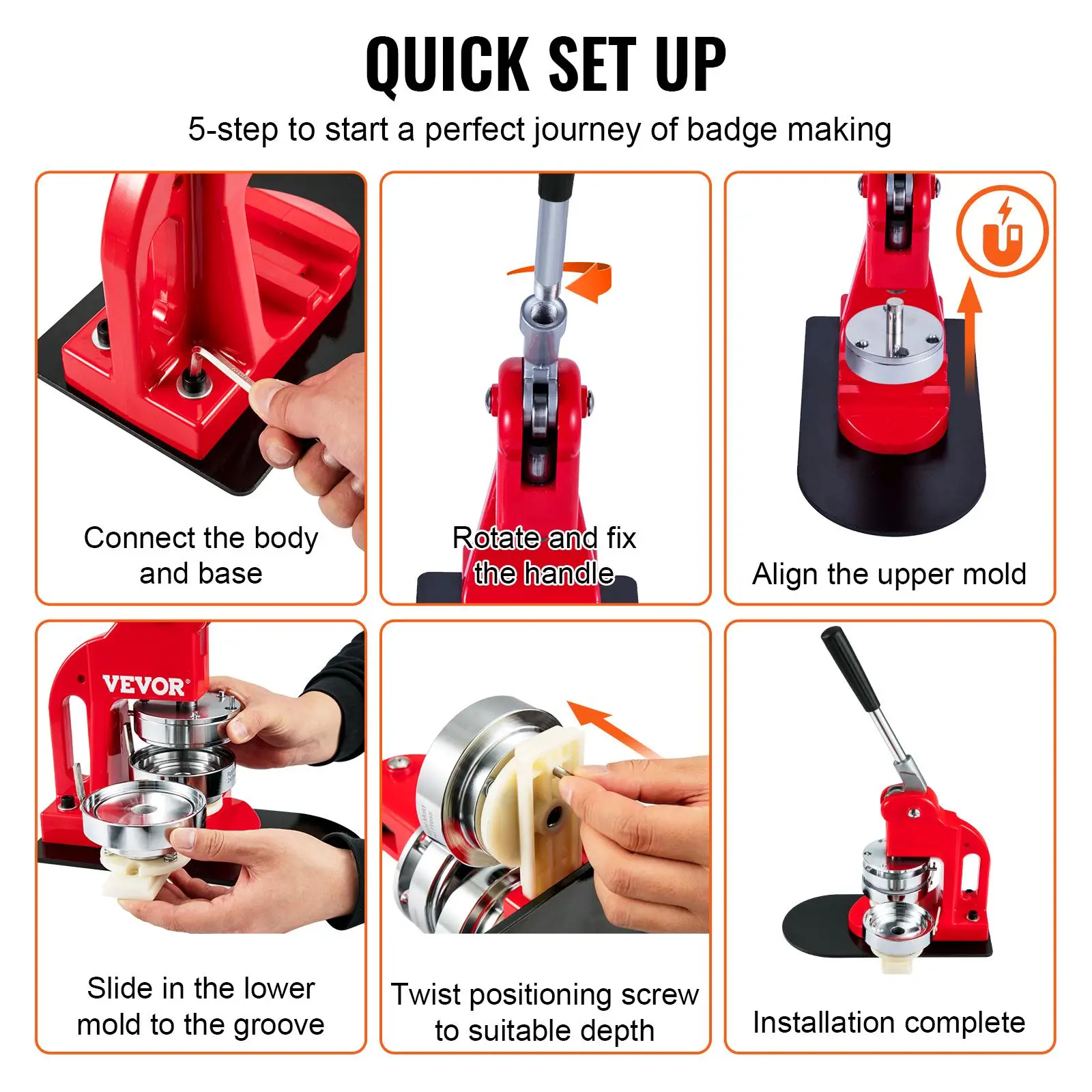 • Easy to Use: The user manual features detailed operation instructions that explain how to install molds and make badges. The operation process is simple. Believe us, you will learn it quickly! The sound structure will make your badge-making journey safer and more convenient. Get ready to start creating!