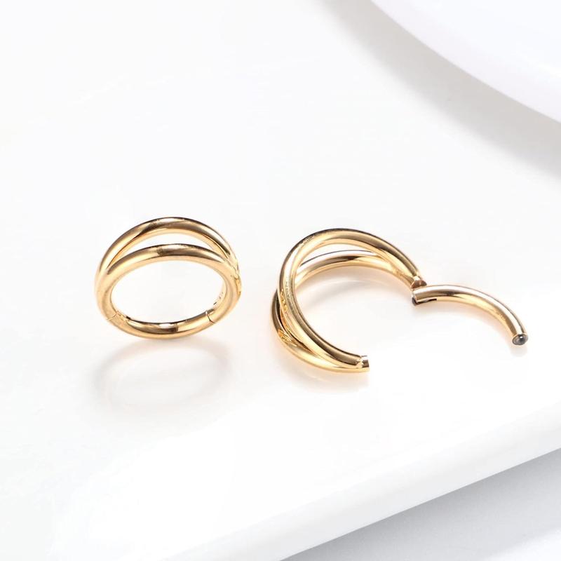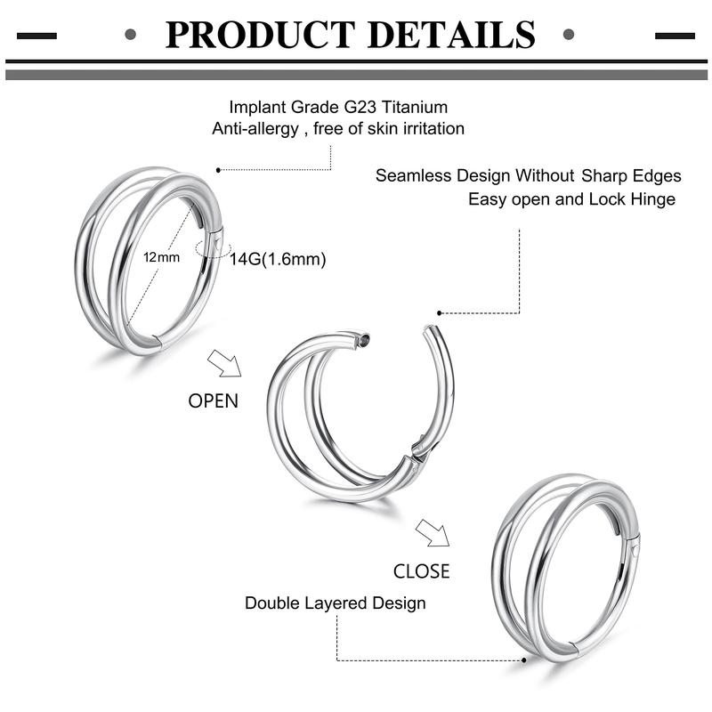 14G Piercing Ring- Smooth surface without sharp edged hinged seamless hoop, won't hurt any surrounding skin. With double layered and shining AAA+ CZ, white and yellow plated, this piering ring perfect fits both men and women, choose the preferred style as your daily piercing jewelry.