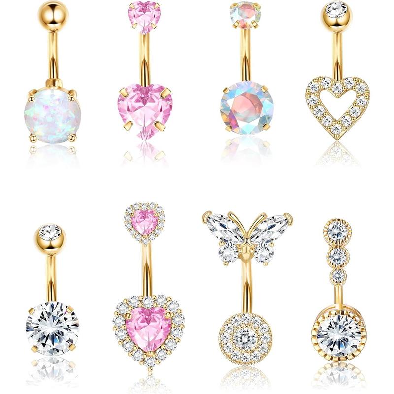You can get various styles of pink heart/opal/cubic zirconia/butterfly belly button rings, which are suitable for your different dressing styles and use occasion.