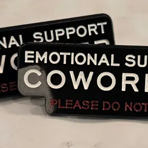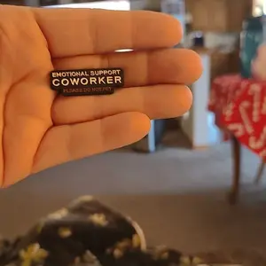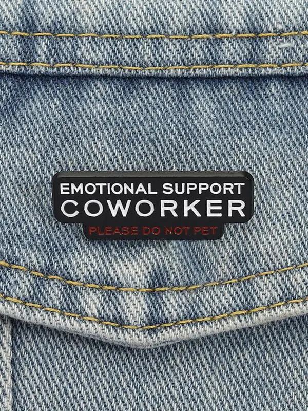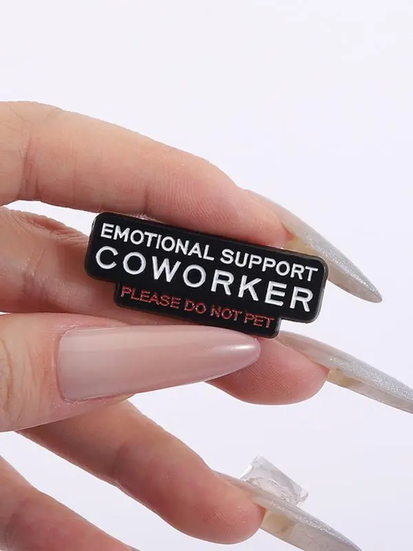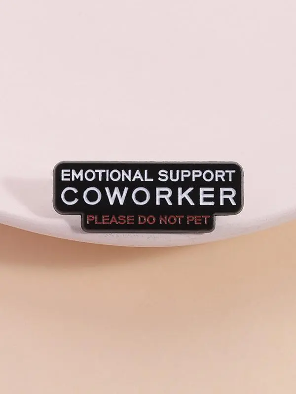 ·Features bold white text reading "EMOTIONAL SUPPORT COWORKER" with a red "PLEASE DO NOT PET" subtitle. This design creates a funny workplace statement. Perfect for adding a touch of humor to your office attire.