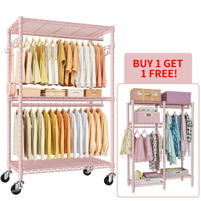 【Buy 1 Get 1 Free】Heavy-Duty Rolling Clothes Rack P1 Portable Wardrobe with Wheels for Hanging Clothes Organiser,Hold 500lbs Hangable Black Closet Storage System Adjustable Standing Shelf Folding Trolley Cart【Buy 1 Get 1 Free】Heavy-Duty Rolling Clothes Rack P1 Portable Wardrobe with Wheels for Hanging Clothes Organiser,Hold 500lbs Hangable Black Closet Storage System Adjustable Standing Shelf Folding Trolley Cart