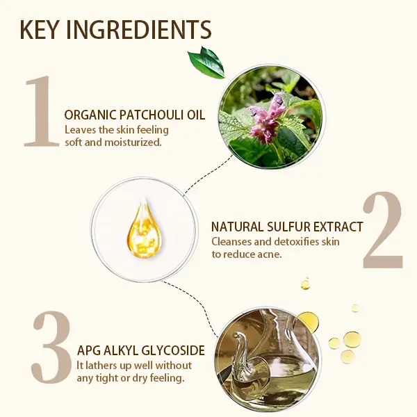 Infused with natural sulfur, organic patchouli oil, APG (plant-derived cleanser), and terpenes for a powerful yet gentle clean. Effectively detoxifies while removing dead skin cells, scalp buildup, and stubborn grime.