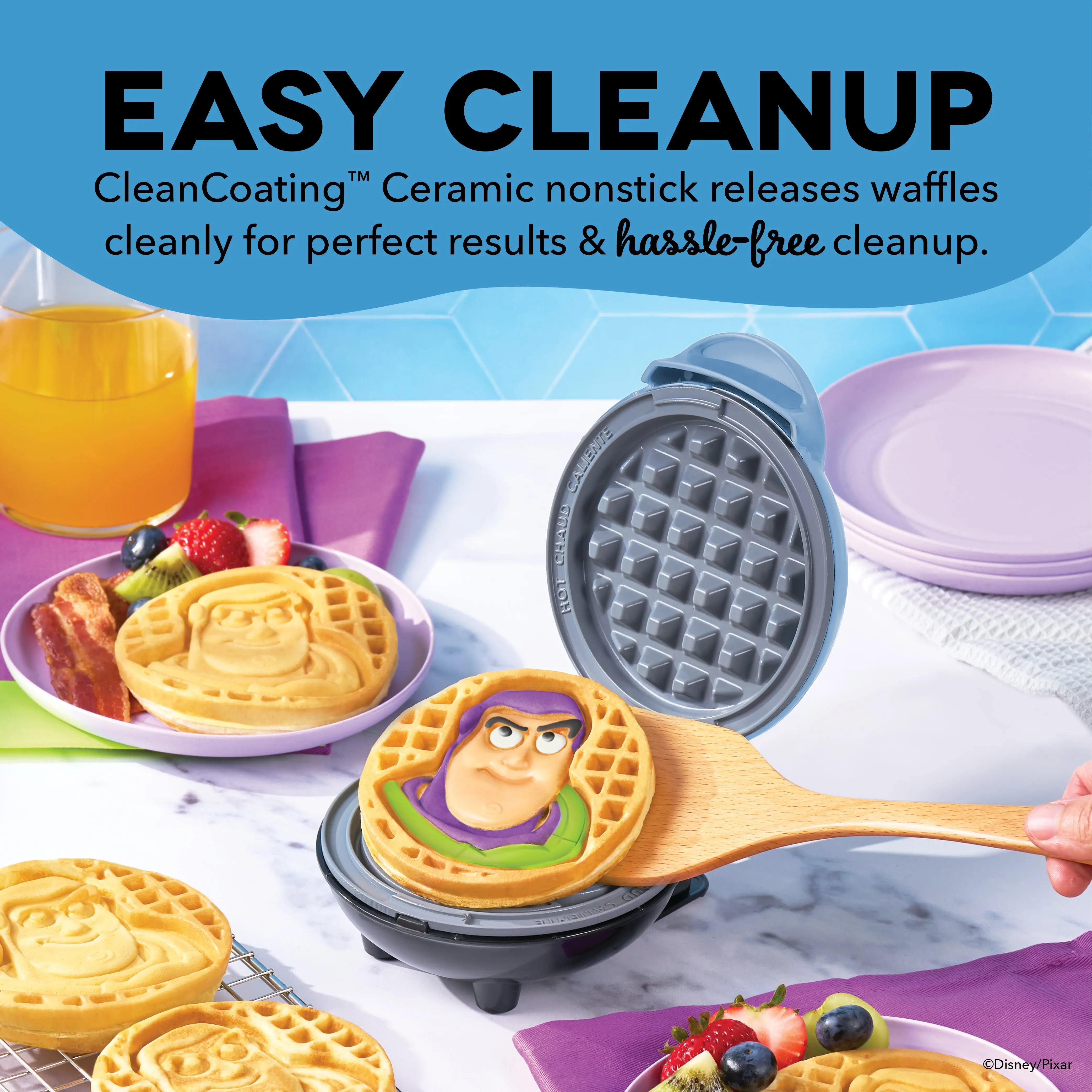 To breakfast & beyond! The Disney | Dash Buzz Lightyear Mini Waffle Maker serves up golden waffles featuring everyone’s favorite Space Ranger. Dual cooking surfaces heat and cook quickly and evenly, and it’s easy to get started! Just plug it in and the Indicator Light lets you know when it’s time to add batter. And the CleanCoating™ Ceramic Nonstick releases easily for hassle-free cleanup. Whip up quick everyday breakfasts or get creative and decorate for memorable family moments and Toy Story-themed fun. Want waffles that are out of this world? Check out our included Recipe Guide for fresh ideas & inspiration!