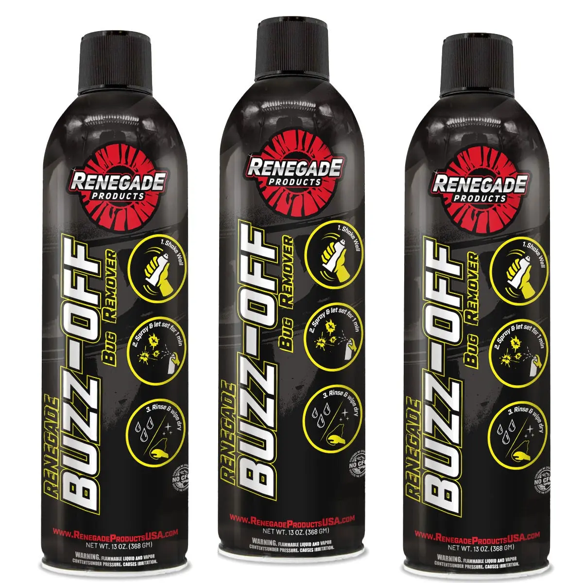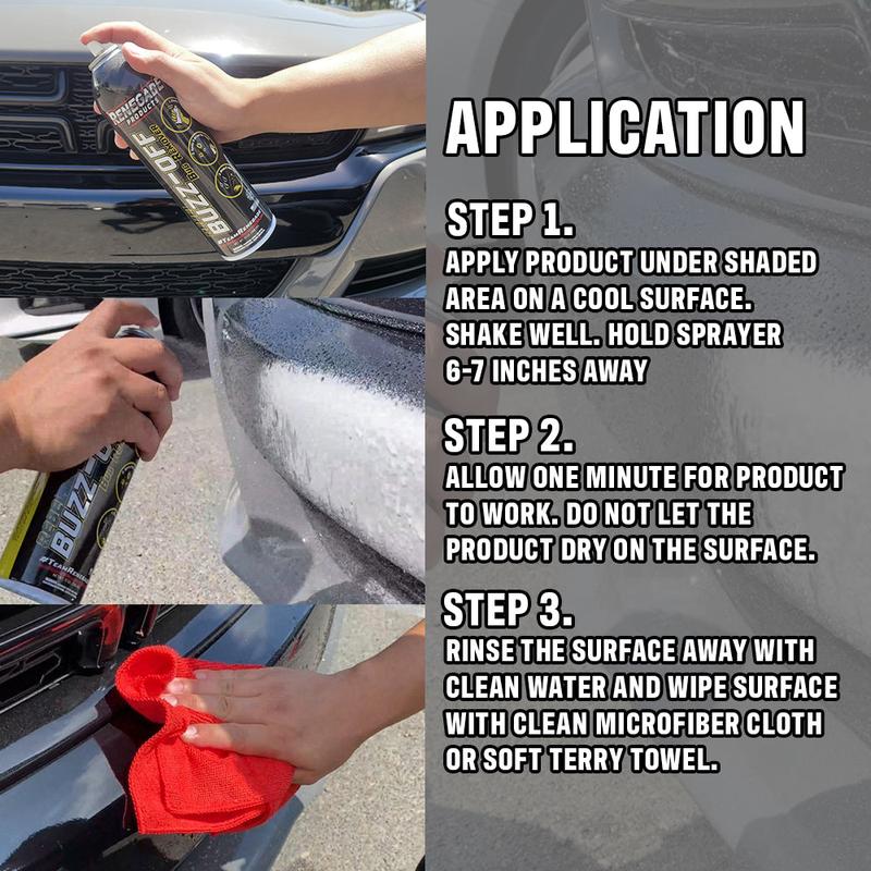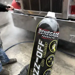 Renegade Buzz-Off Bug Remover is specially formulated to remove stubborn bug splatter, insect residue, and organic contaminants from your vehicle's exterior. It is safe for use on all surfaces, including windshields. Perfect for long road trips or post-drive cleanup.