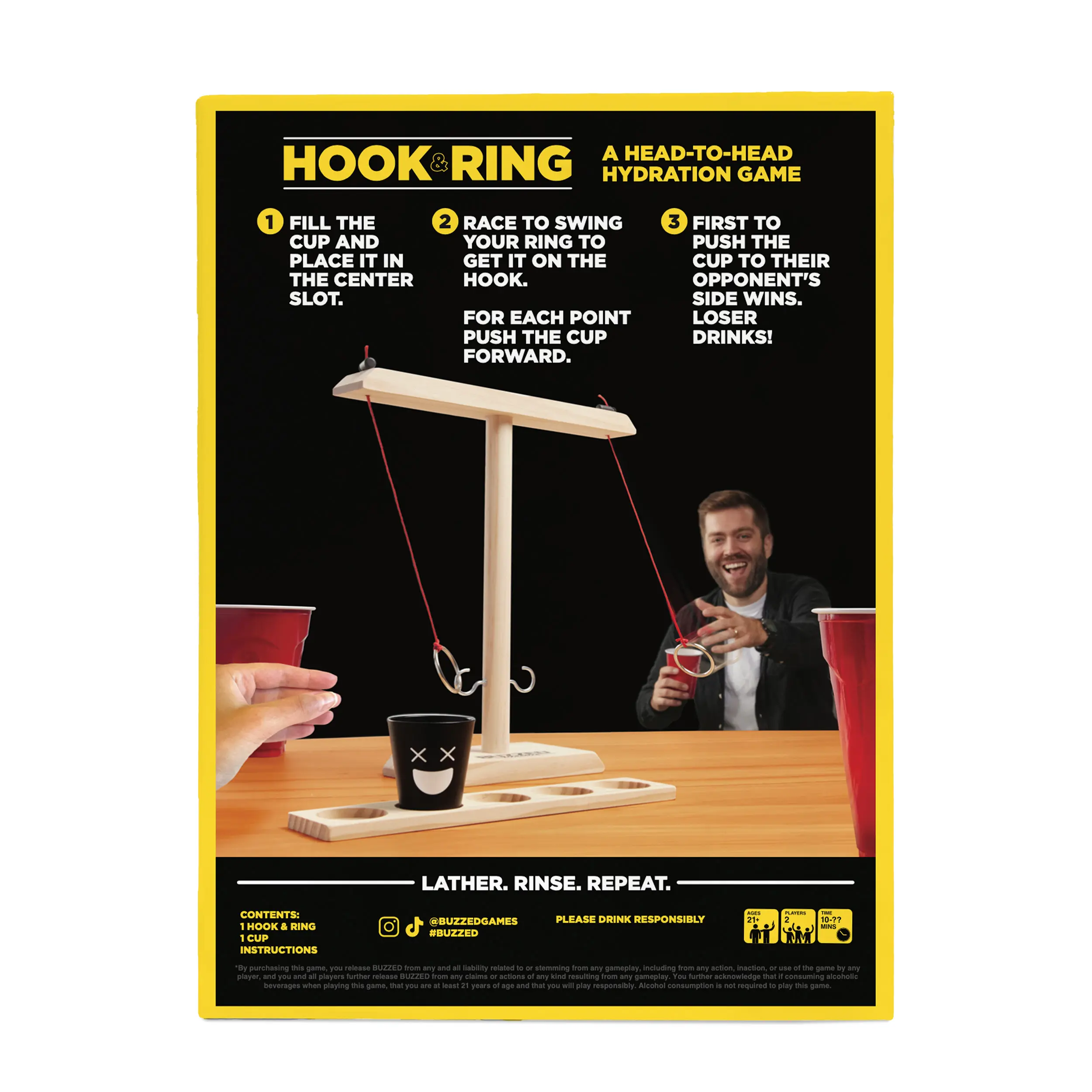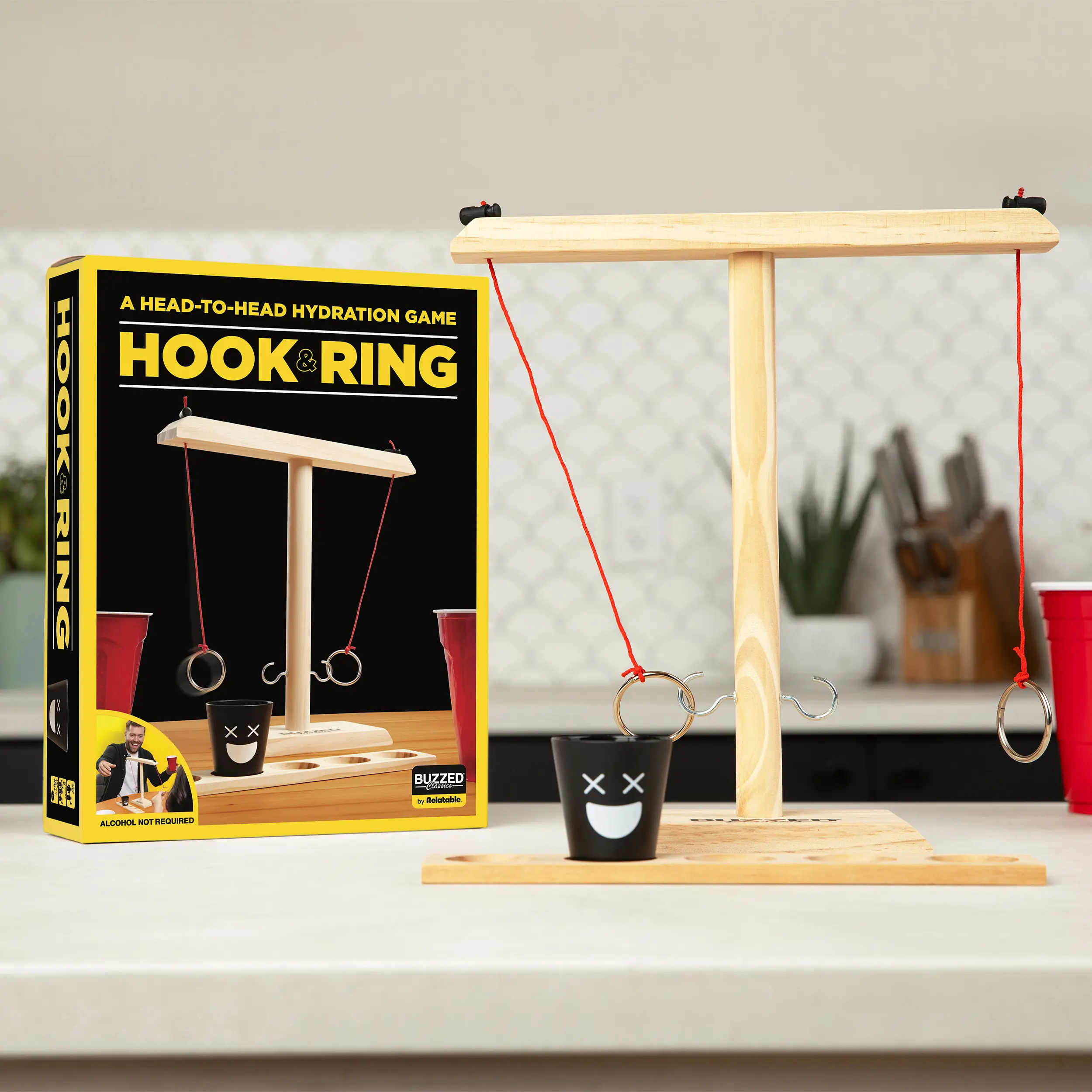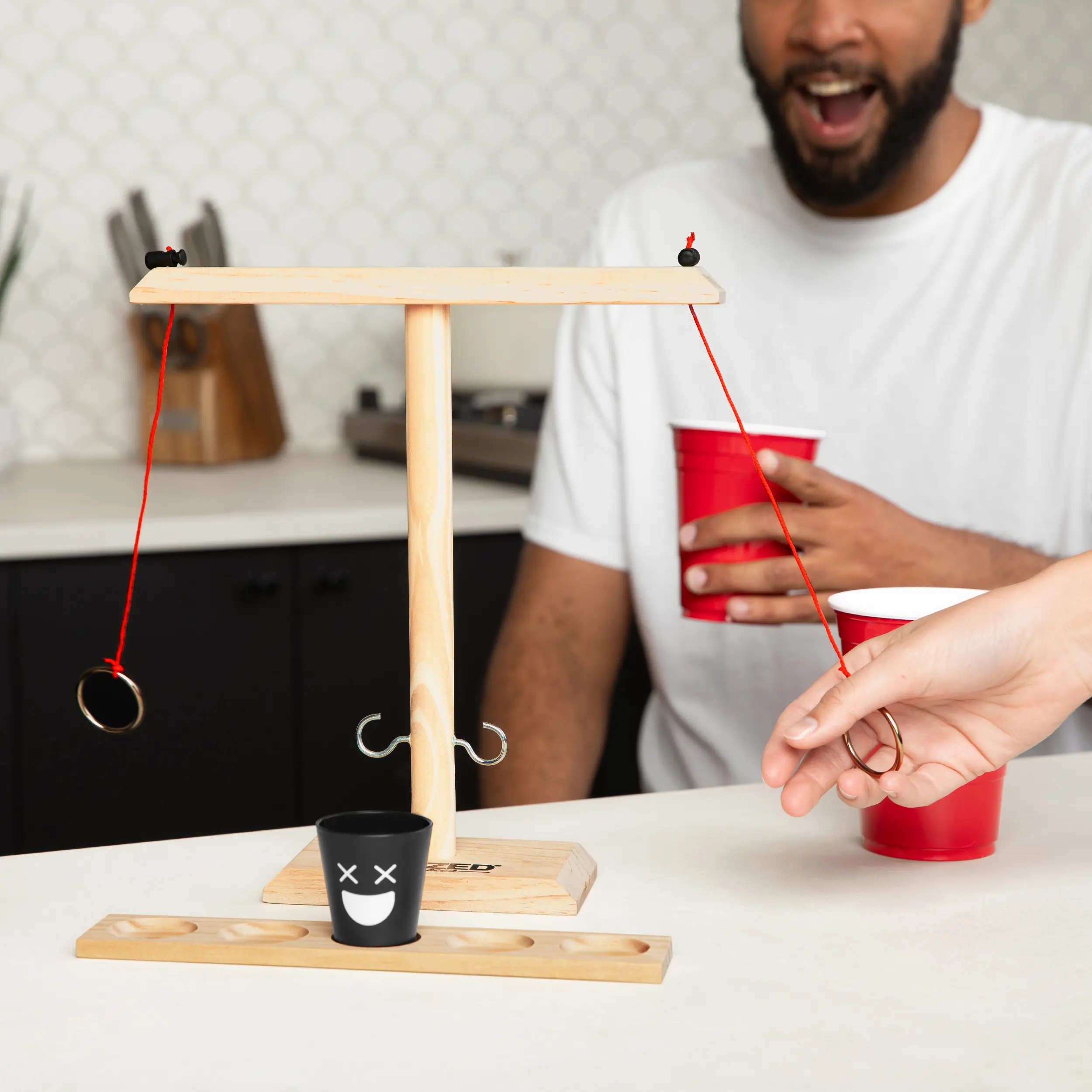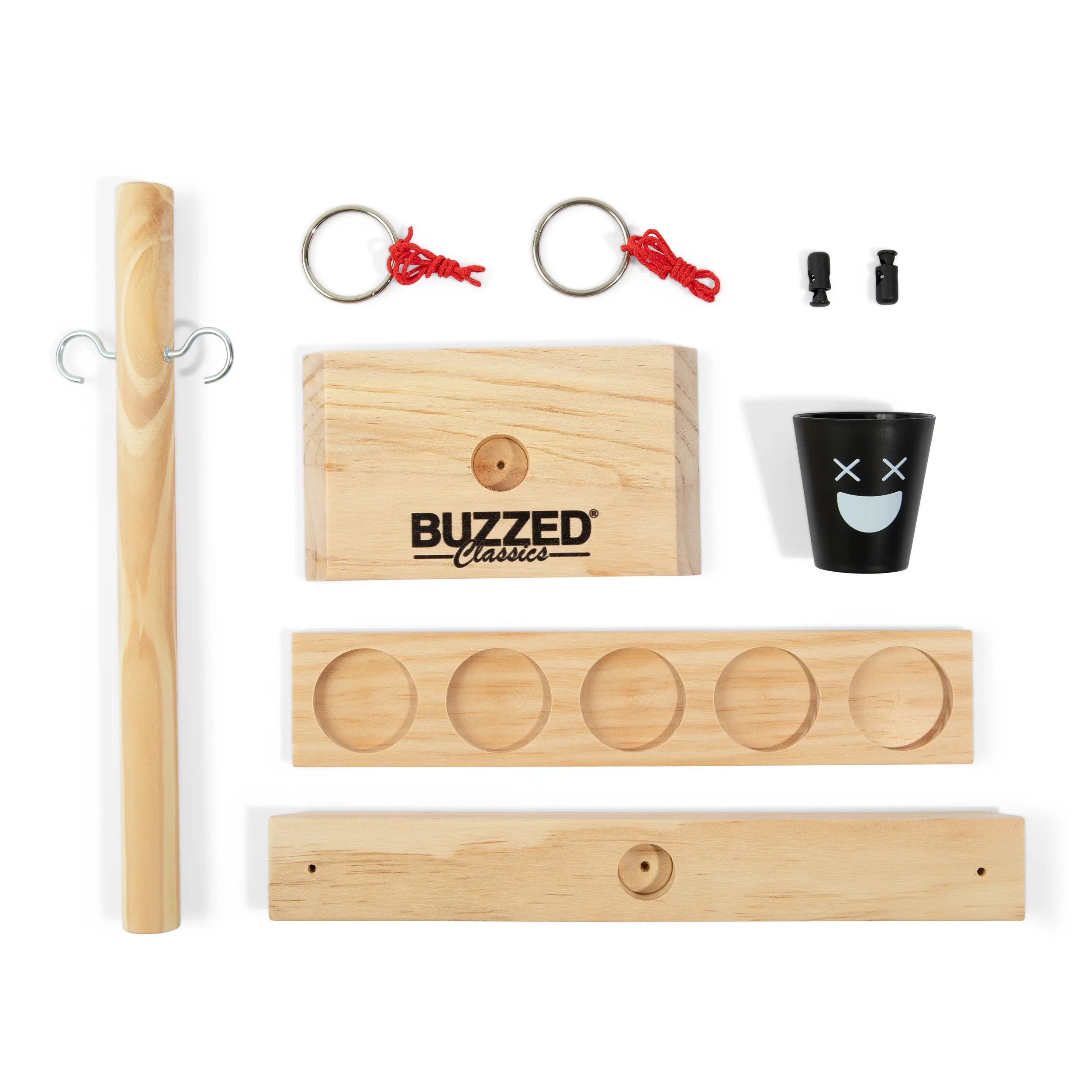 If you like it, put a ring on it—and make your friends drink! Buzzed Hook & Ring is the ultimate party upgrade, bringing the classic bar ring toss game straight to your living room, backyard, or game night setup. Swing the ring, aim for the hook, and move the shot glass closer to your opponent with each successful toss. If it reaches their side… bottoms up!