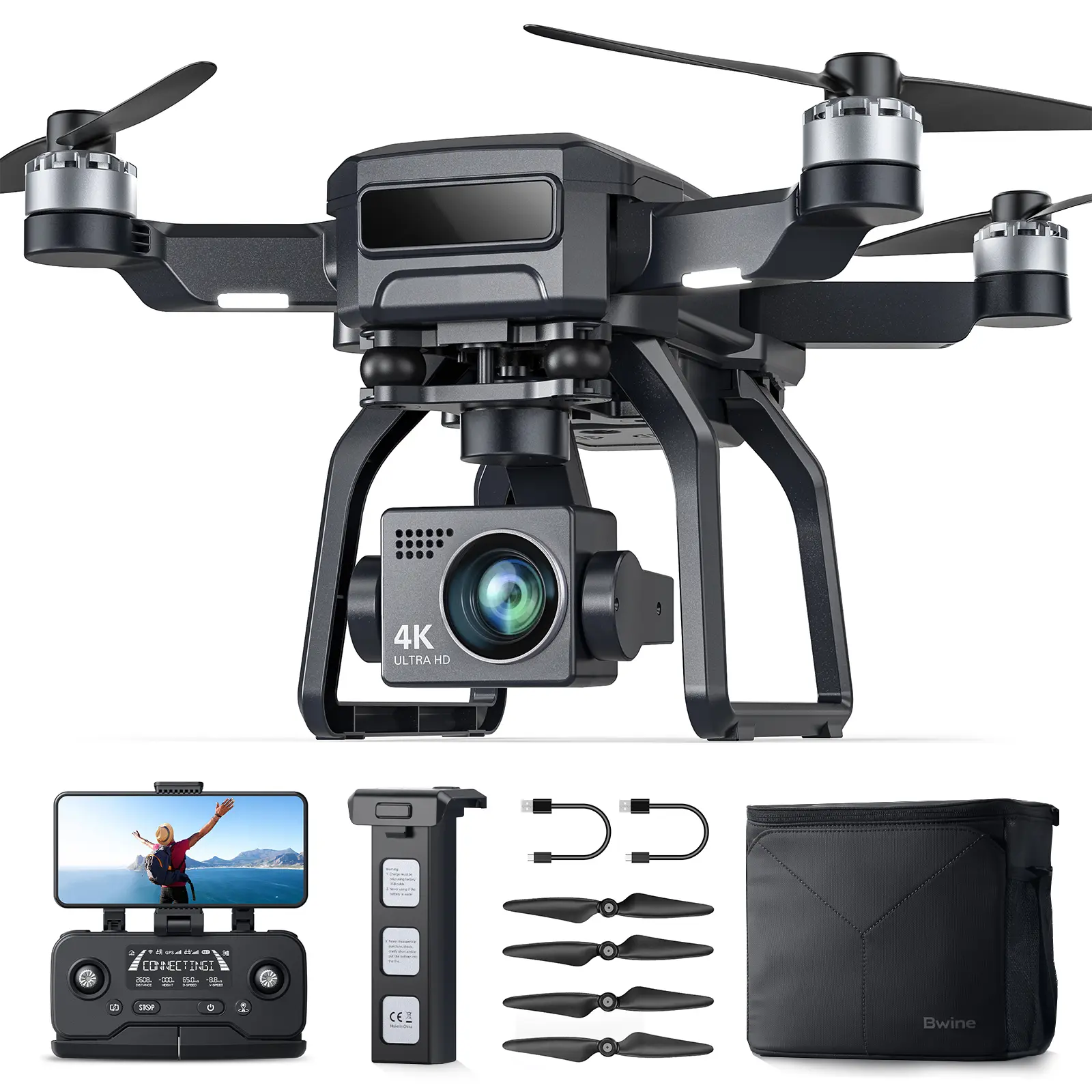 ·【50 Mins Flight Time】: The Bwine GPS 4K drone with camera comes with 2 intelligent batteries, each providing 25 minutes of flight time for a total of 50 minutes. To ensure optimal performance, please use a 5V/3A or 5V/2A wall charger to charge the batteries. It takes about 6.5 hours to fully charge the battery.