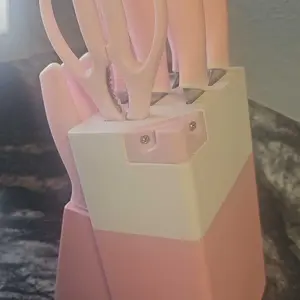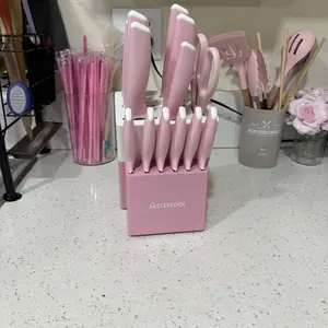 Elevate your kitchen with the Astercook 14-Piece Knife Set, crafted from high-quality ceramic-coated stainless steel. This comprehensive set includes a block and a sharpener, ensuring you have the perfect tools for all your culinary needs.