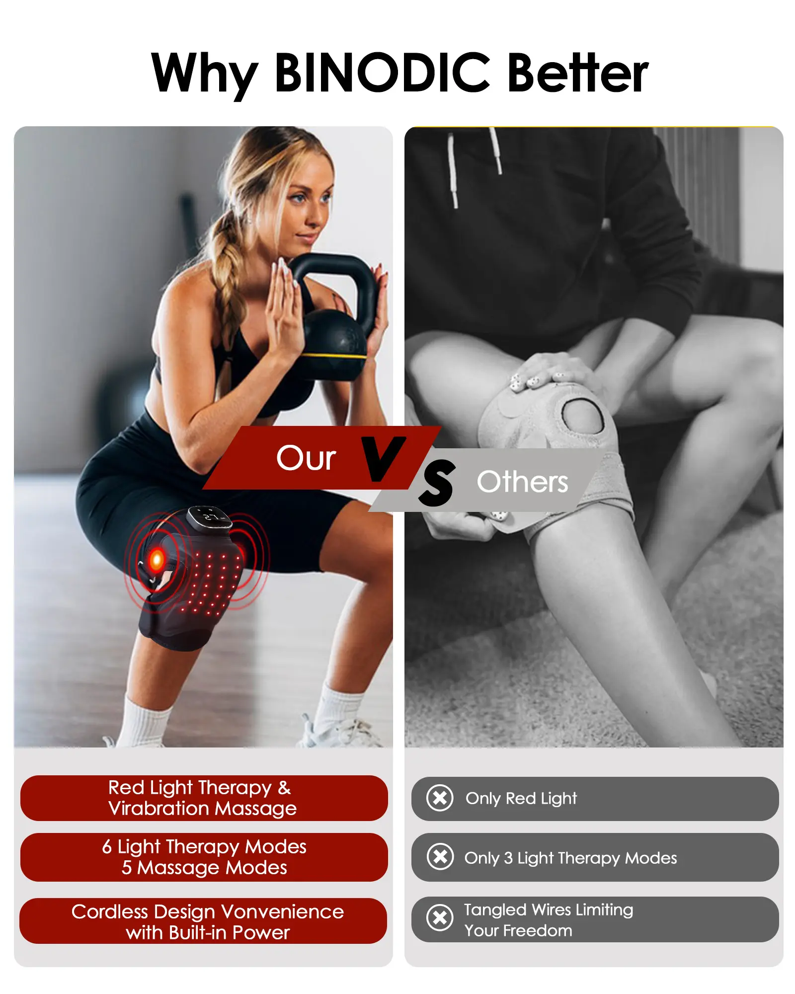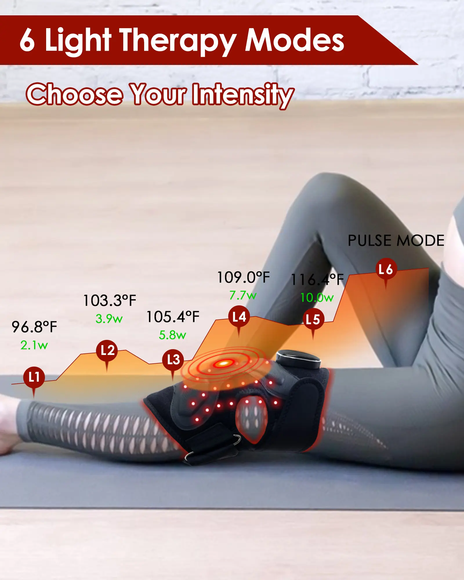 ·Light Therapy & Massage: This red light massage knee brace combines advanced red light therapy with deep tissue massage to alleviate joint pain and promote blood circulation, allowing your knees to rejuvenate in relaxation. Whether for everyday fatigue or post-exercise recovery, this brace provides a gentle yet effective soothing experience.