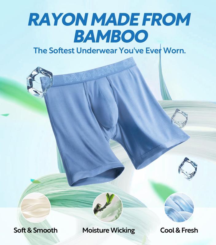 Clearance - DAVID ARCHY Mens Underwear Rayon Made from Bamboo 4/7 Pack, Wicking-Moisture & Cool Boxer Briefs with Support Fly Pouch for FathersDayGift