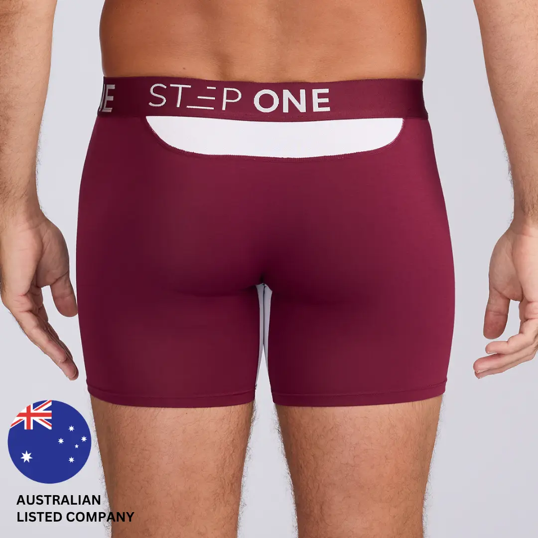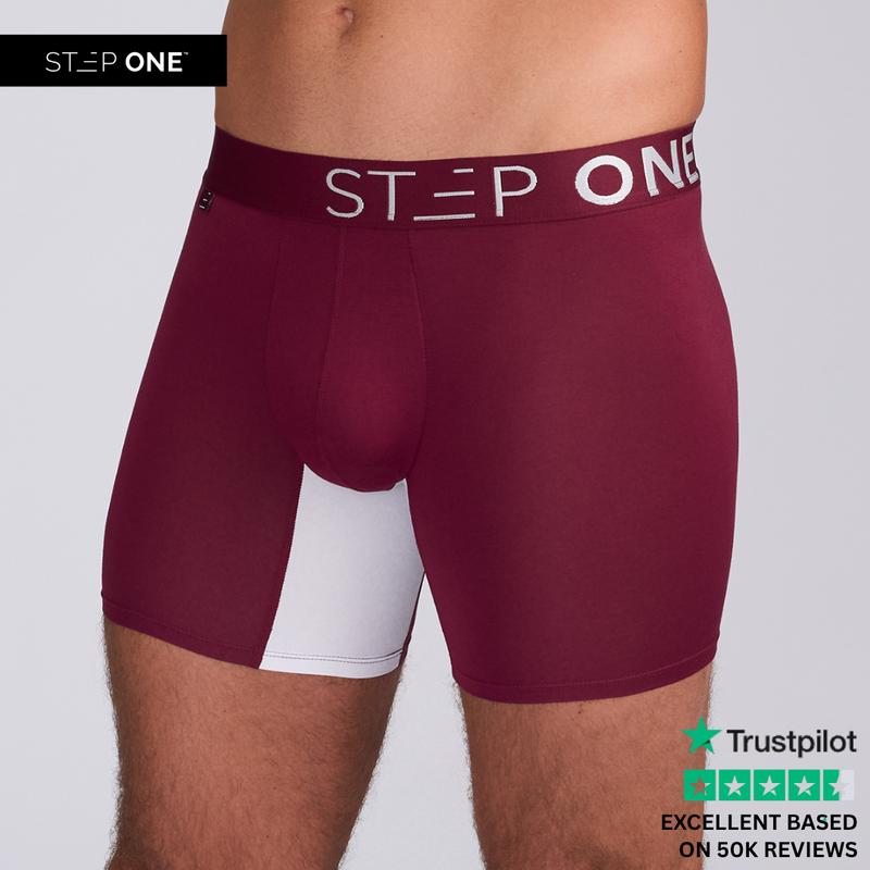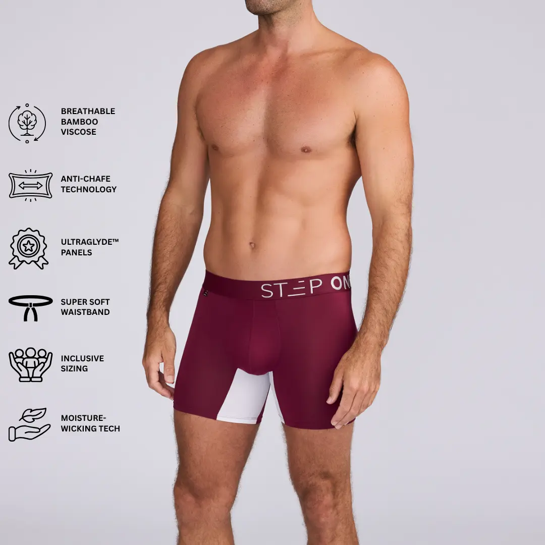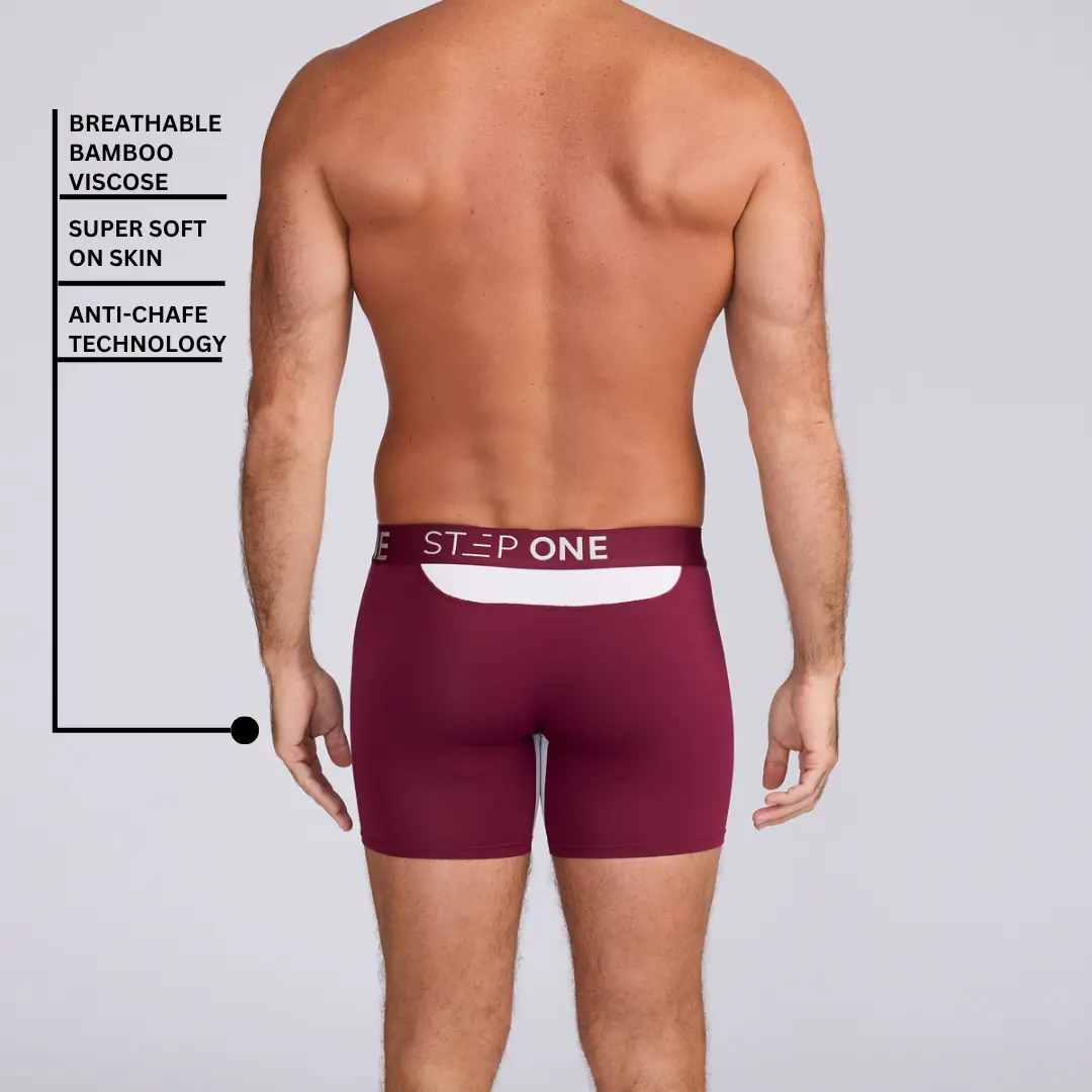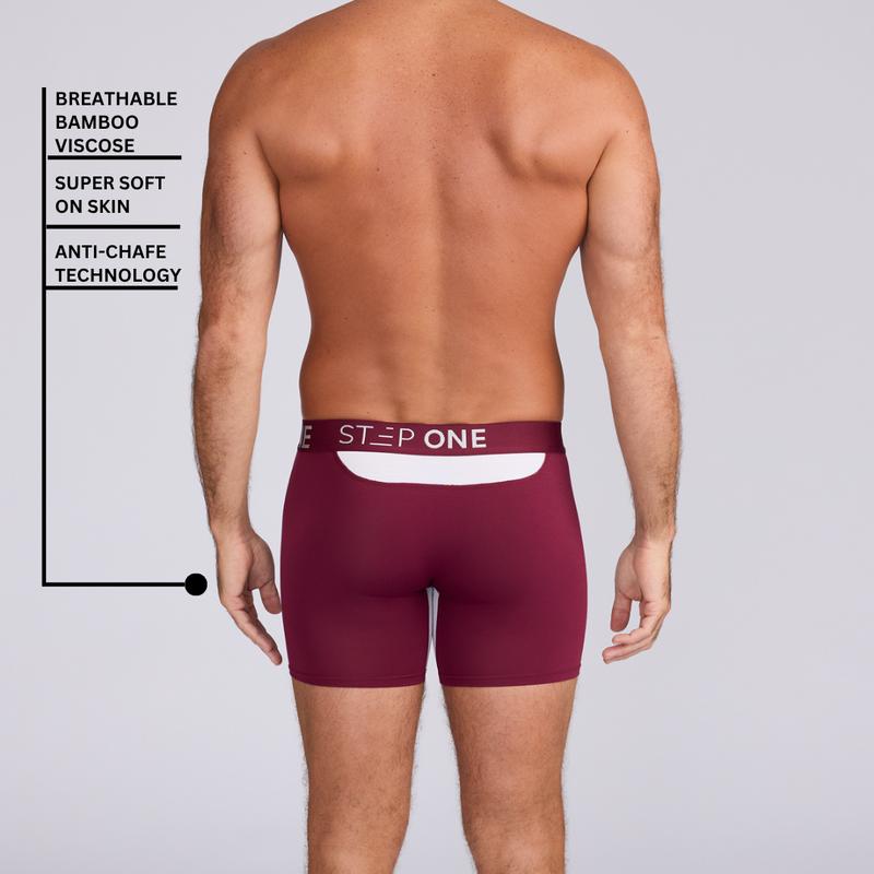 5. Step One Men's Boxer Brief - Burgundy, Anti-Chafe, Breathable Bamboo Fabric, UltraGlyde Panels, Hidden Elastic Pouch, Premium Underwear, Athletic Daily wear