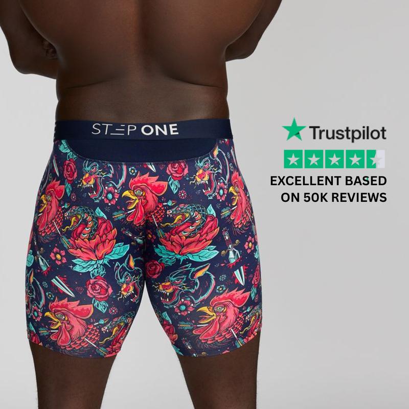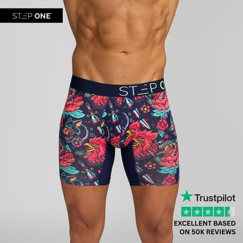 5. Step One Men's Boxer Brief - Tattoo Parlours, Anti-Chafe, Breathable Bamboo Fabric, UltraGlyde Panels, Hidden Elastic Pouch, Premium Underwear, Athletic Daily wear
