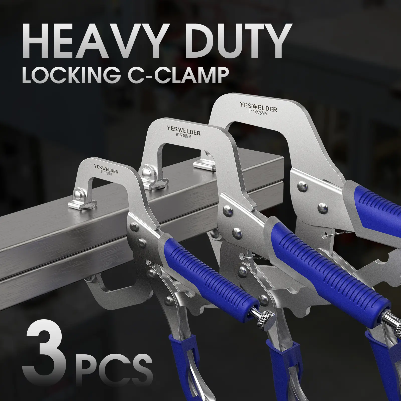 YESWELDER Locking C-Clamp Set of 3 Sizes (6, 9, 11 inches) | Robust Design, Heat-Treated Jaws, Chrome-Plated Alloy Steel | Home & Workshop Use