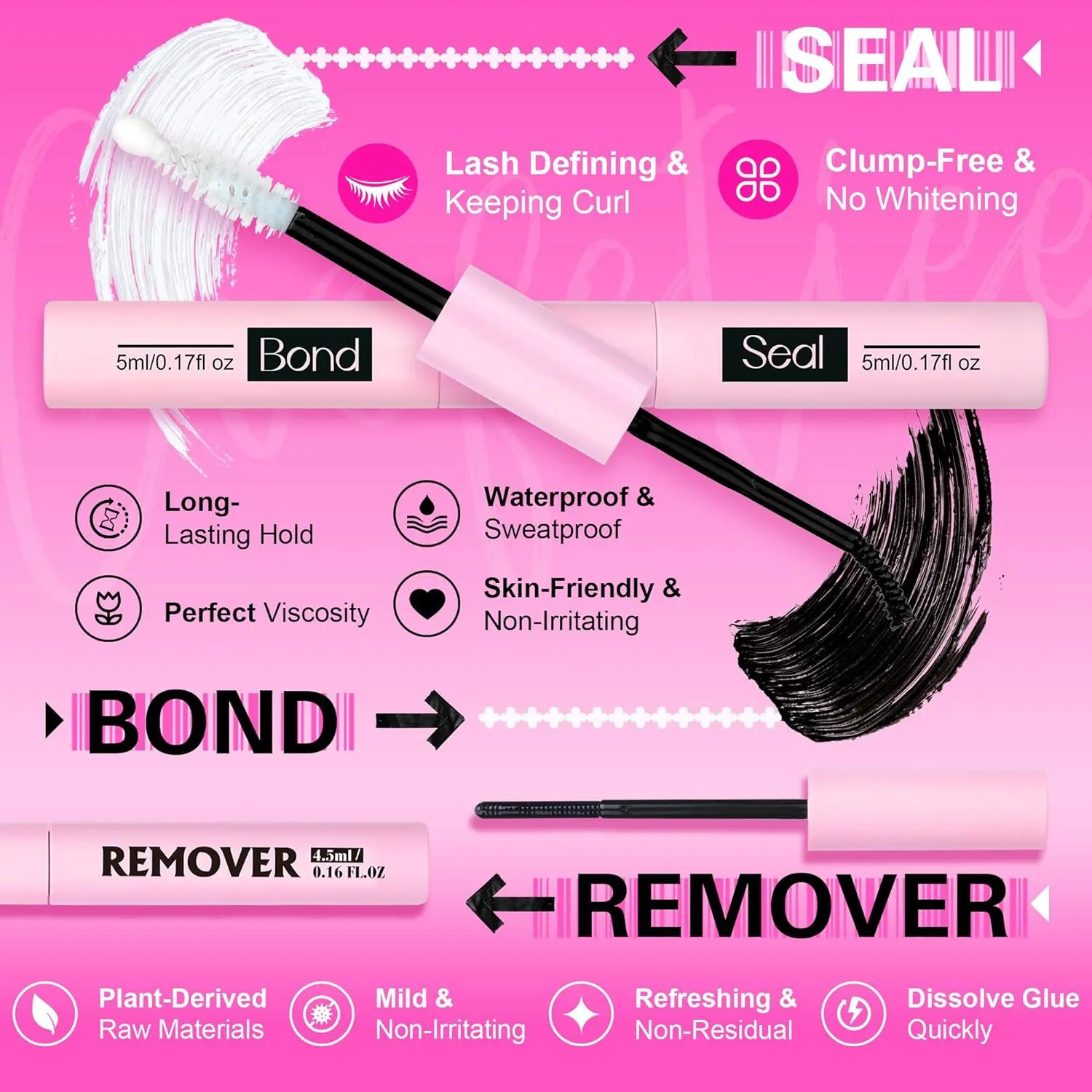 【Complete Kit】: The package includes everything needed for application: adhesive, waterproof makeup remover, tweezers, and brushes for a convenient DIY experience.