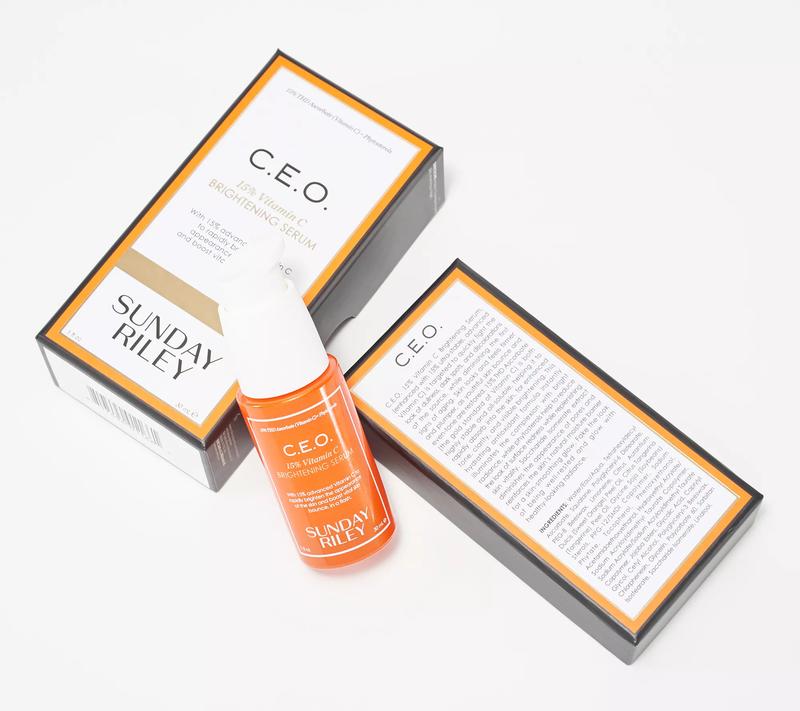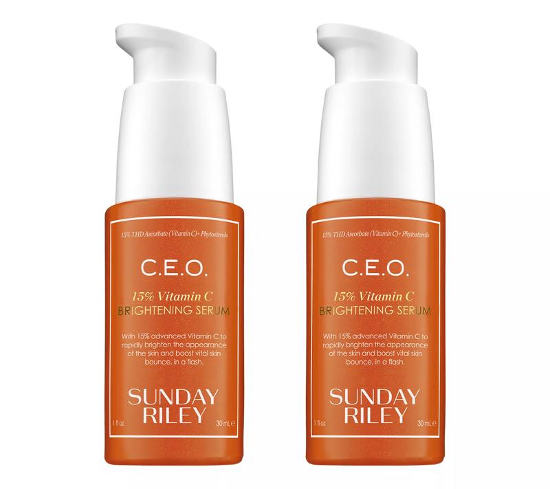 ·Two 1-fl oz C.E.O. Vitamin C Brightening SerumsSunday Riley C.E.O. Vitamin C Brightening Serum is targeted to improve the look of dullness. This hydrating formula illuminates the complexion so skin looks youthful. It contains THDA and tocopherol, antioxidants that help to fight against free radical aggressors.Vitamin C Brightening Serum exfoliates the skin, helping to diminish the look of fine lines and wrinkles. It also brightens the look of skin and makes dull skin appear more radiant.How do I use it: Apply one to two pumps to clean skin, morning or night.From Sunday Riley.Includes: