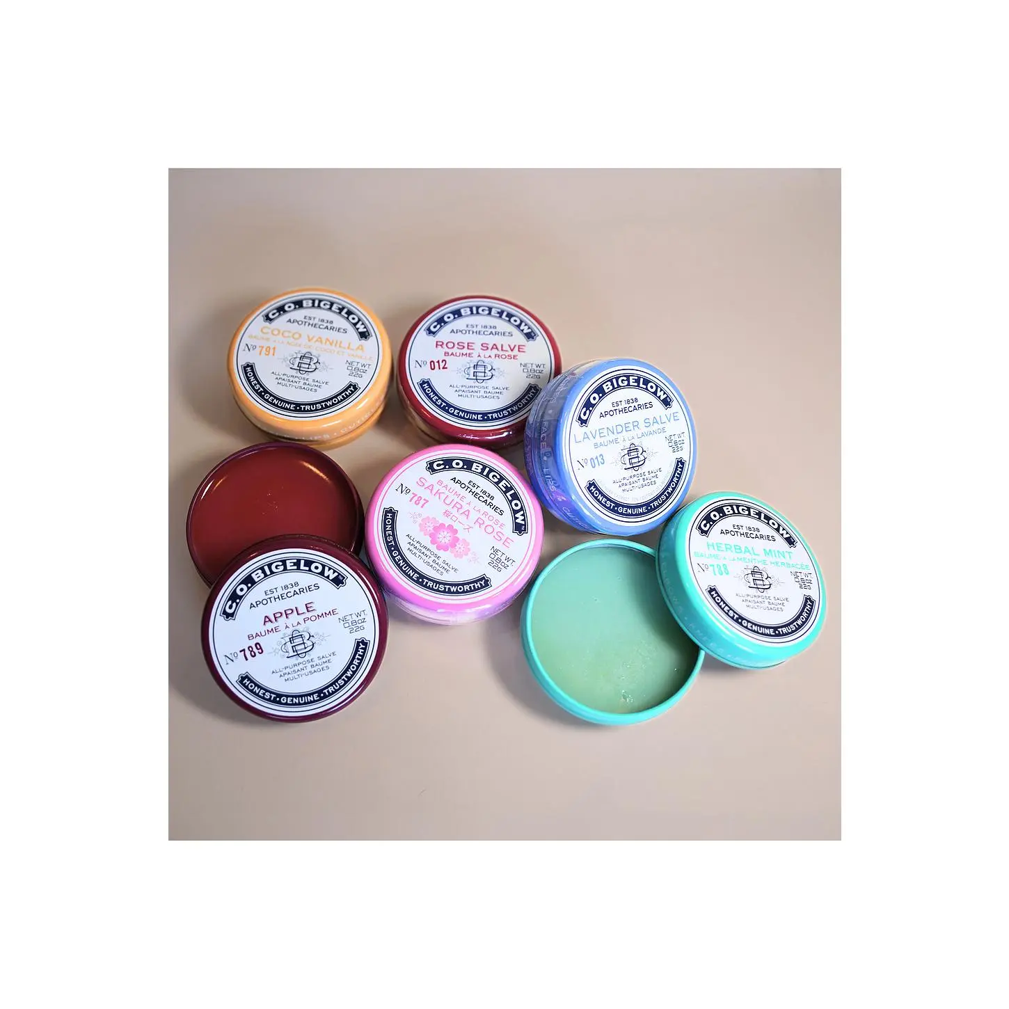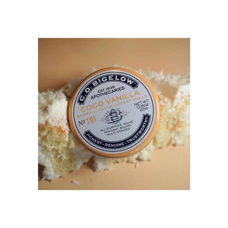 ·Bigelow's all-purpose salve collection, Coco Vanilla Salve cares for lips and beautifies skin with natural emollients like Cotton Seed Oil, Jojoba, Lanolin and Squalane