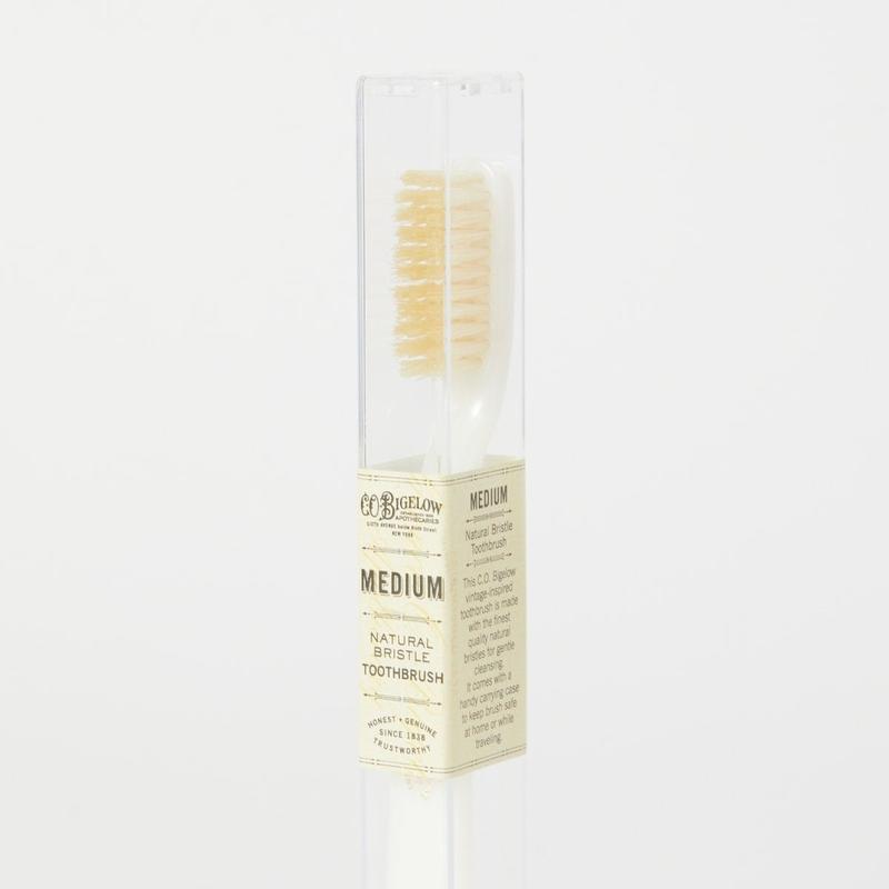 This C.O. Bigelow vintage-inspired toothbrush is made with the finest quality natural bristles for gentle cleansing.