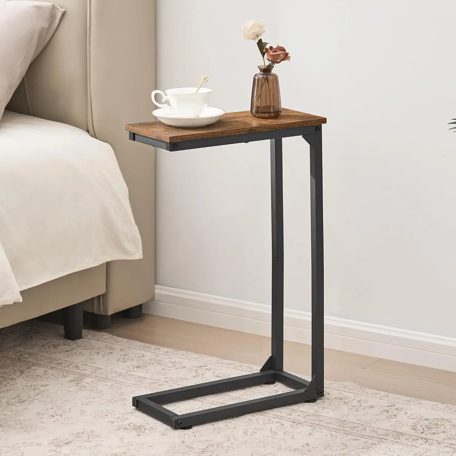 【C-SHAPE DESIGN】This C shaped end table features a narrow design as couch tables that slide under sofas or beds effortlessly. for holding phones, coffee, and freeing up living space