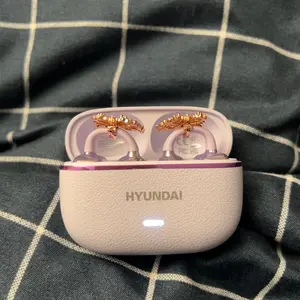 The headphones work well. Small case which fits in your pocket or purse. The units fit my small ears but slide a bit. The jewels are bright and shiny. The one problem is that once you place the jewel on the unit the unit will not fit the charging case. You have to remove the jewel from both to store/charge the headphones each time.