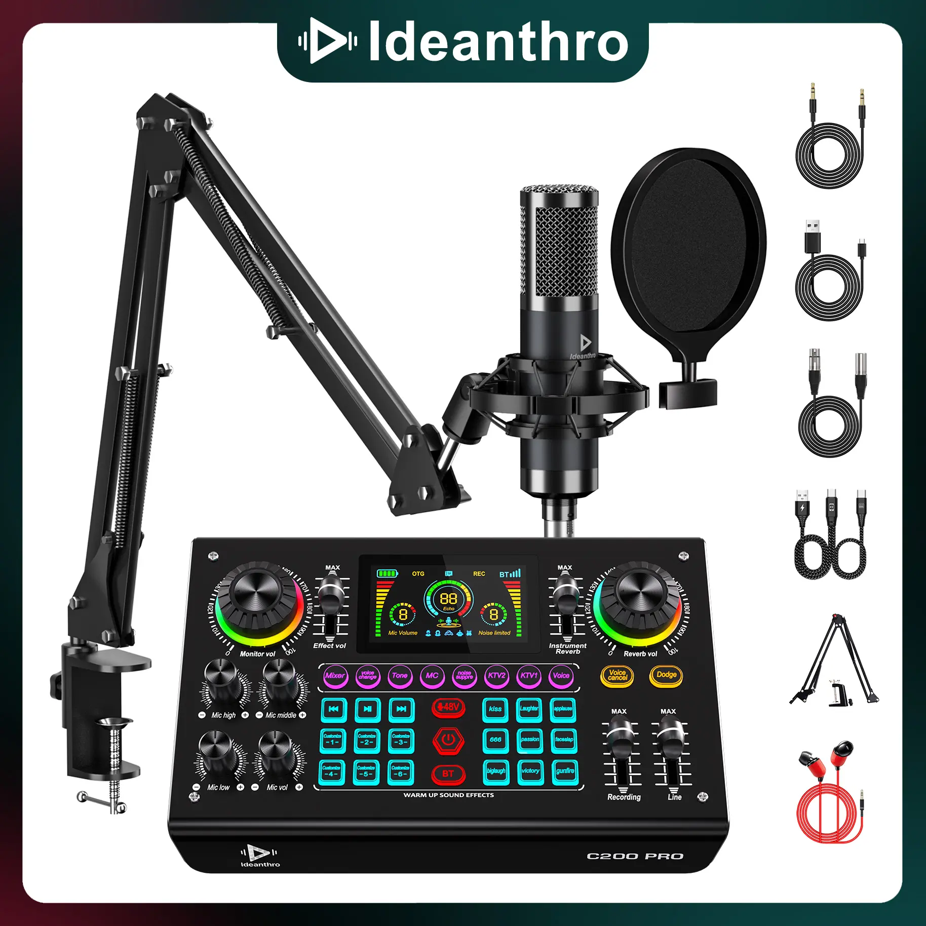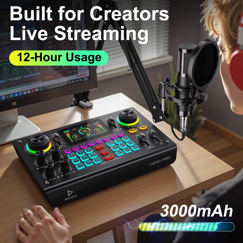 Ideanthro C200PRO-P15 Audio Mixer, Live Sound Card Podcast Bundle with XLR Microphone Connector, Professional Chipset, ouch Voice Change for Podcast,Recording,Vocal,Game Voice#TikTokShopBlackFriday