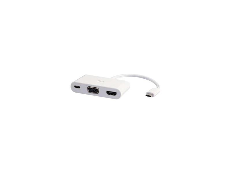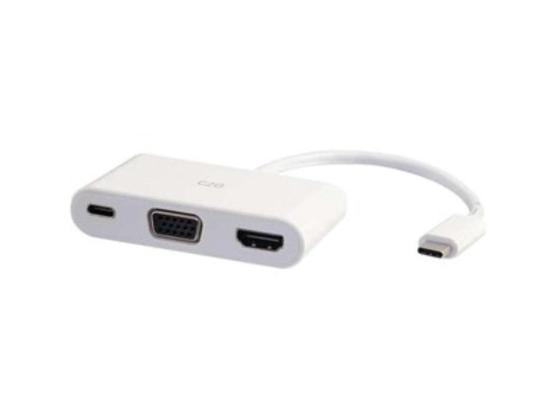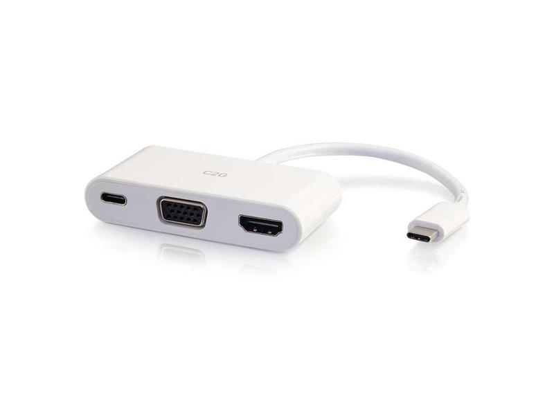 C2G USB C TO HDMI AND VGA ADAPTER CONVERTER WITH POWER DELIVERY - WHITE - USB TO