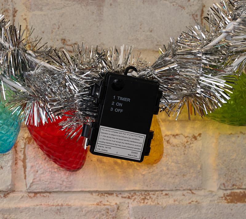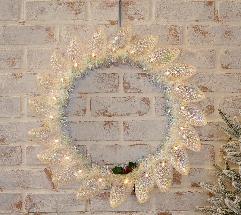 This holiday season, it's all about the glimmer and shimmer. Glow up your decor with this delightfully designed wreath -- a clever combination of C9 bulbs and tinsel. From Mr. Christmas.