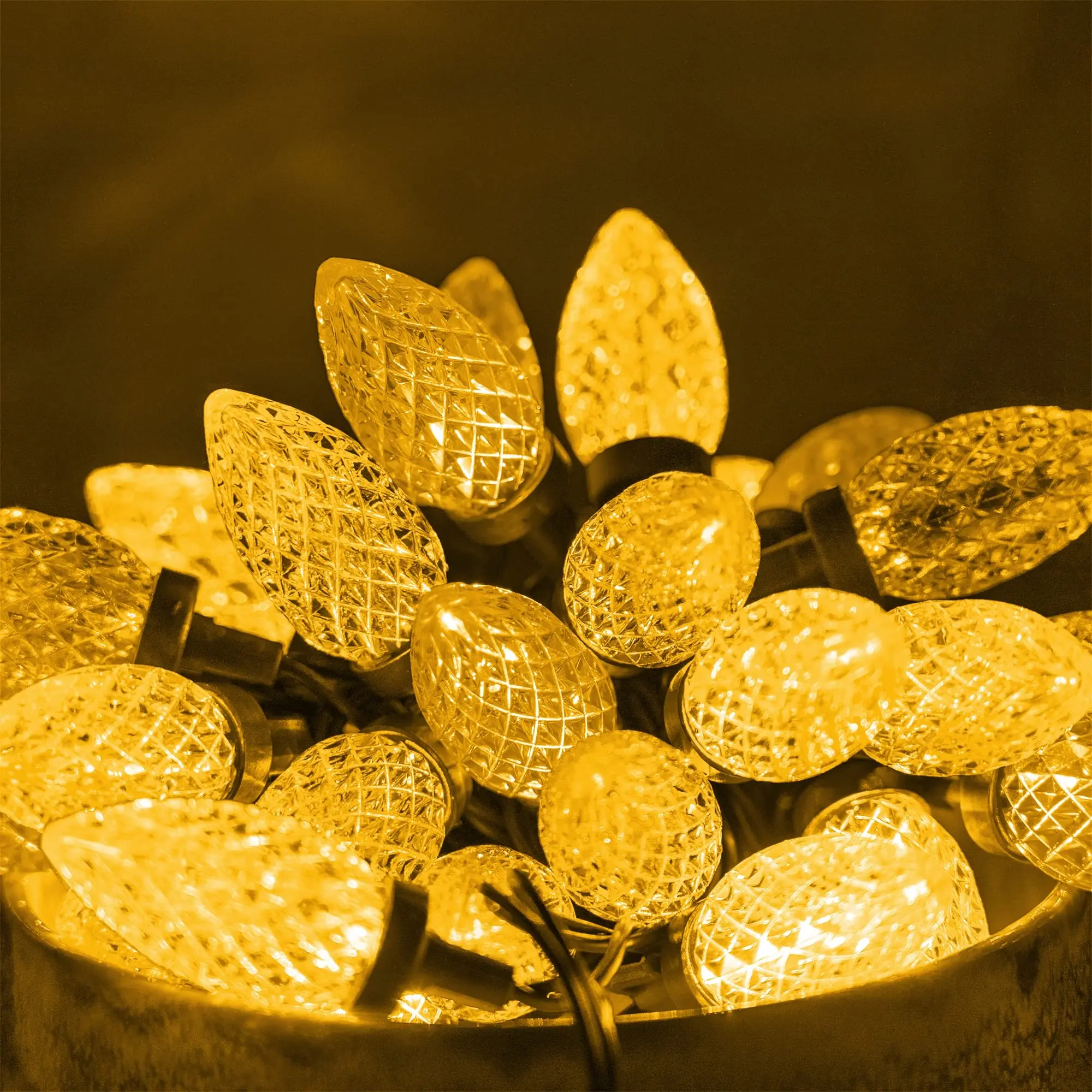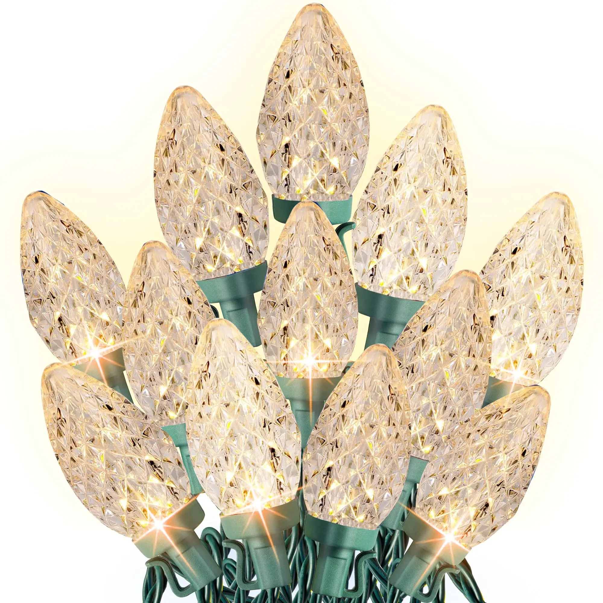 Transform your home with these 100 LED C9 Christmas String Lights. Each light is connected by a 66-foot green wire, perfect for both indoor and outdoor use. Ideal for Christmas trees, yards, and home decorations. The lights are waterproof, ensuring durability and safety. Connect them to create a festive ambiance.