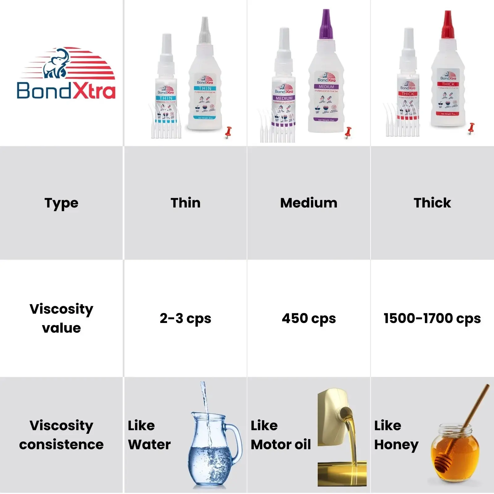 ✅ Thick Viscosity: The viscosity is 1200-1500 cps, similar to that of honey. It is ideal for gluing porous or incompatible parts due to its gap-filling capability. The curing time is 20-30 seconds.