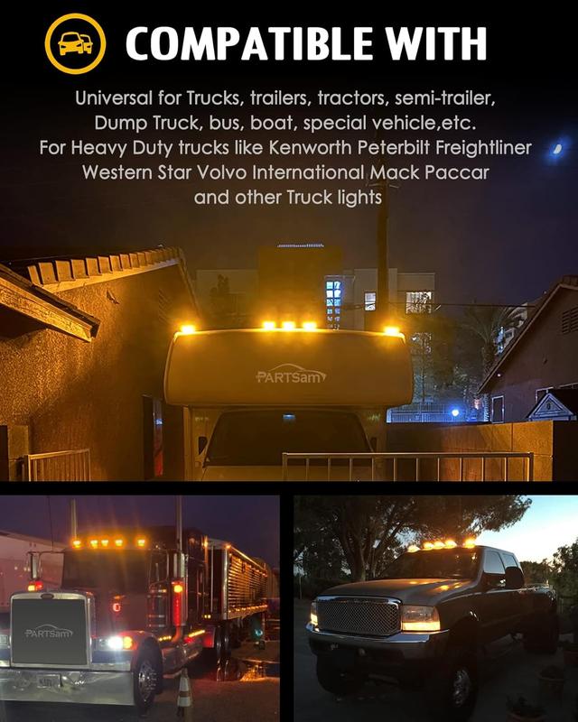 ·OEM Replacement: Partsam ( 5 x Amber in clear lens) Cab Marker Top Roof Running Light Clearance Light 31 LED w/ Chrome Base, great replacement for Incandescent lights.
