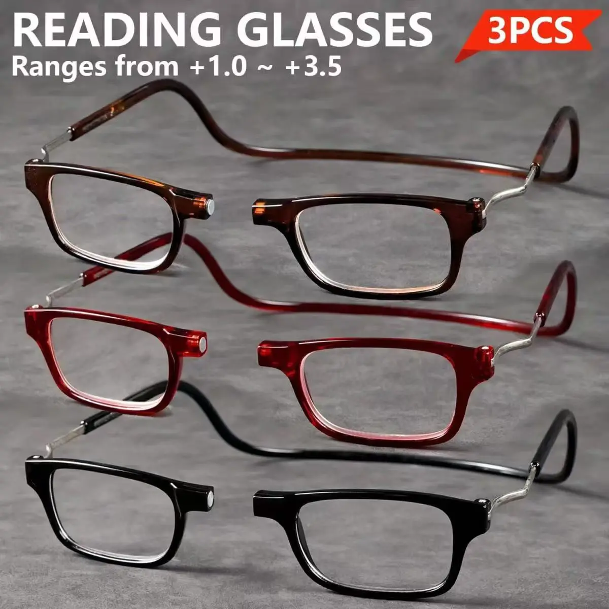 📚 3pcs Magnetic Rectangle Reading Glasses