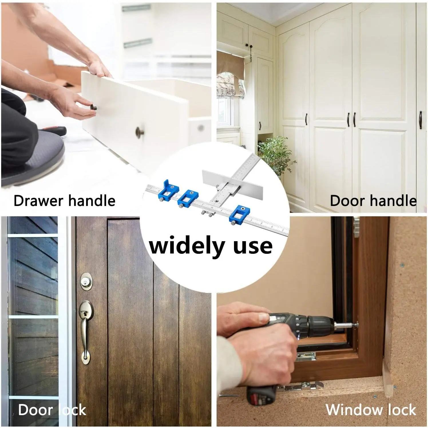 【Precision Drilling with 2 -Engraved Scales】 Featuring dual scales (imperial and metric) engraved with precision, this cabinet hardware jig ensures unmatched accuracy. Crafted from stainless steel, , and ABS plastic, it maintains high resistance, strength, and precision for consistent results.