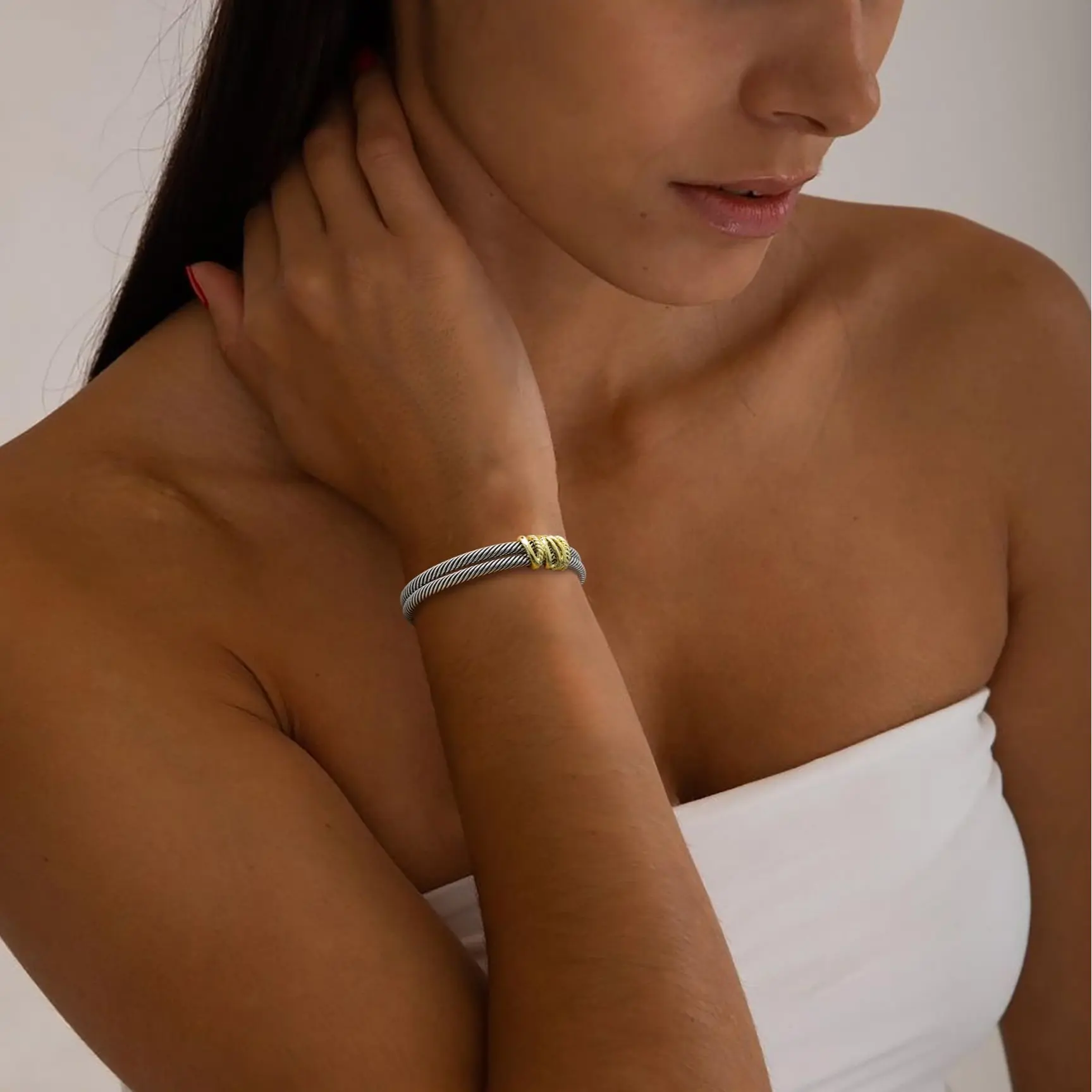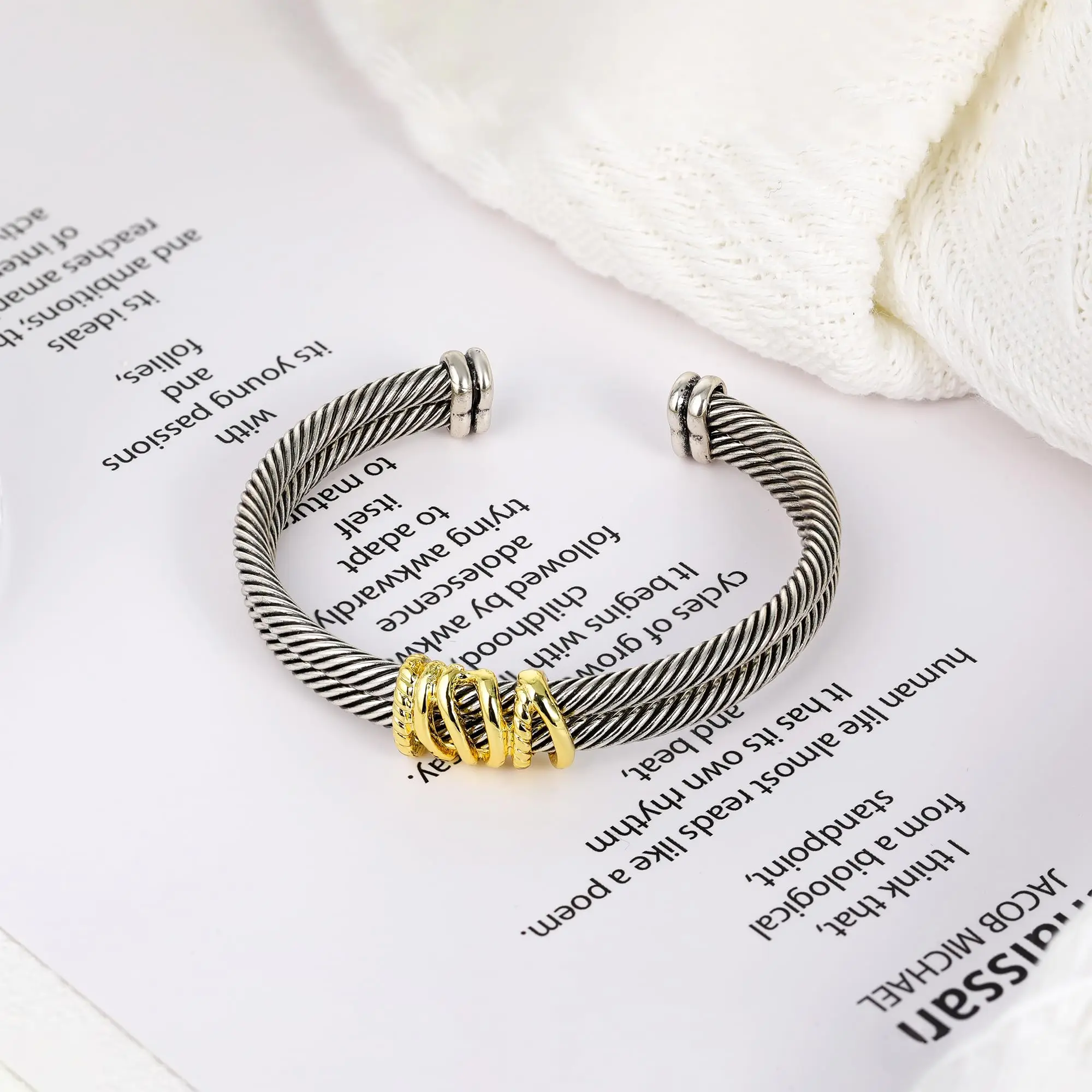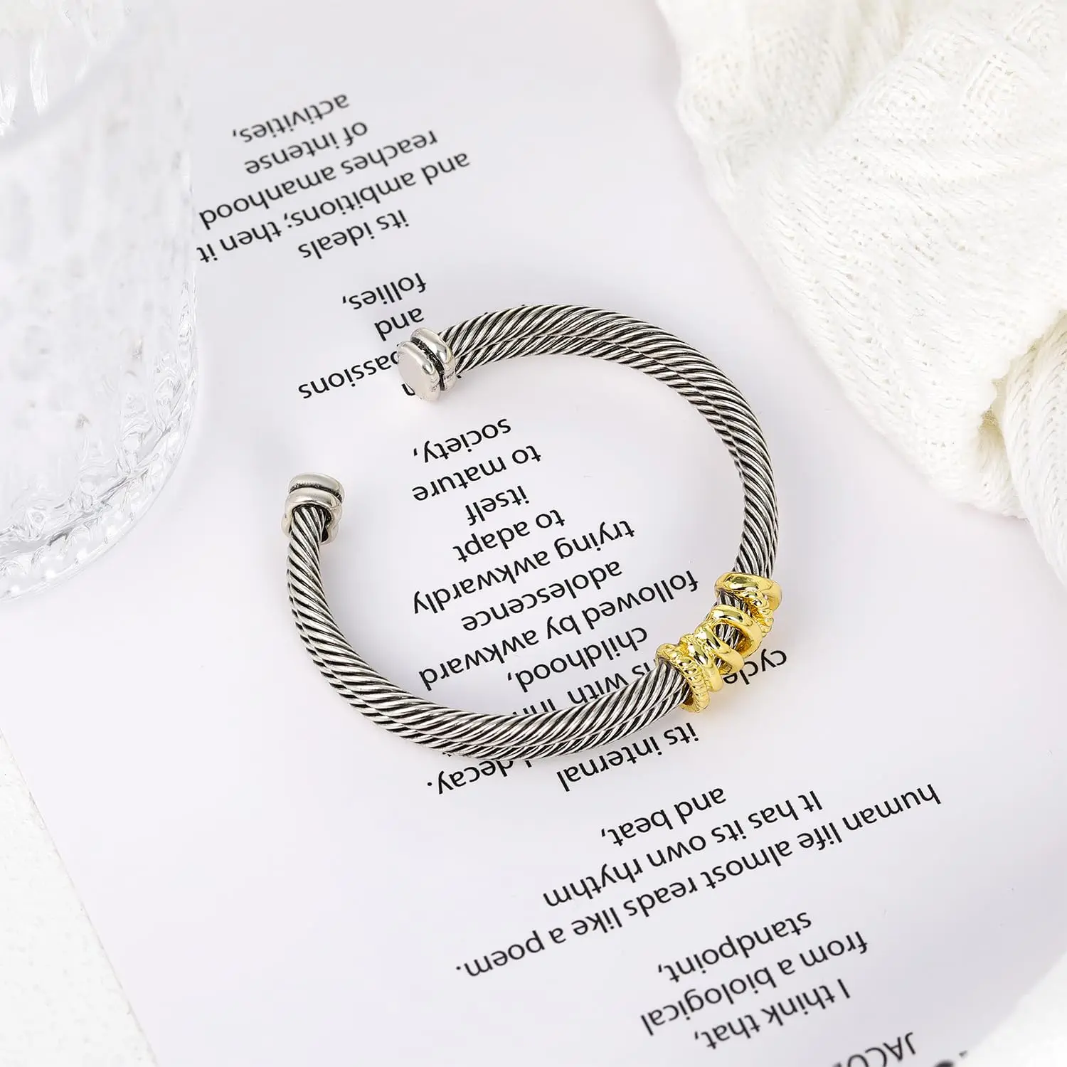 ·Trendy Style: Stackable two-tone twisted cable wire design. Adds a unique and stylish element, making it a standout accessory.