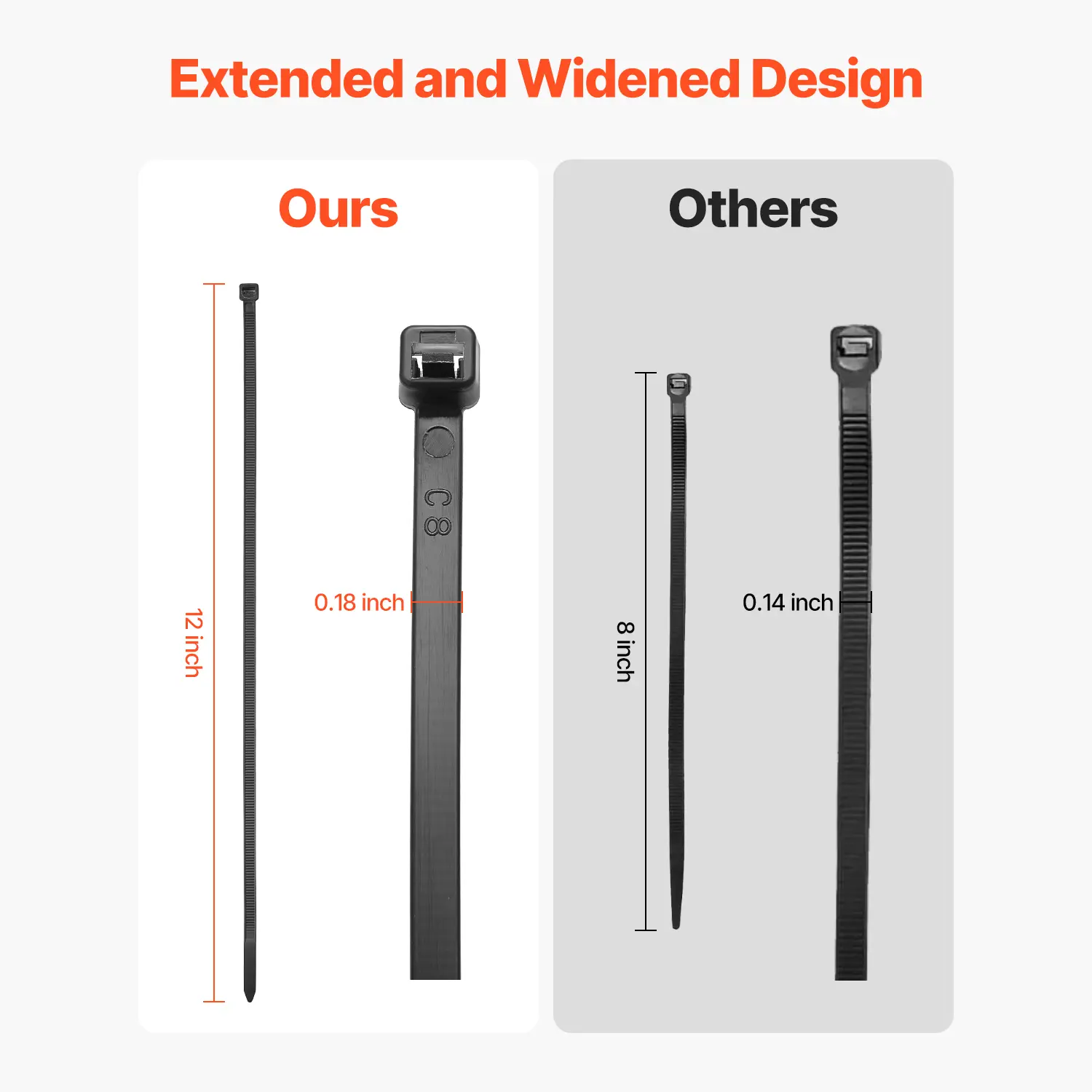 • Extended and Widened Design: Measuring 12-inch in length and 0.18-inch in width, these cable wire ties can easily bundle larger diameter cables. The widened design helps prevent indentations or damage to items. You can trim the ties to suit different needs.