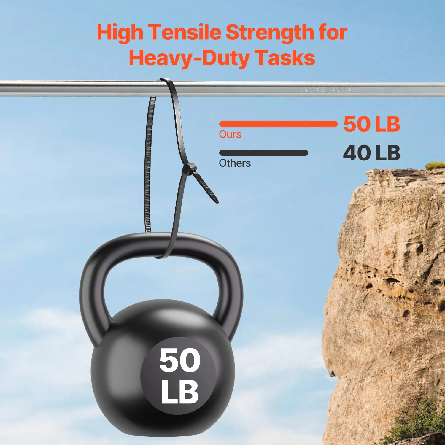 • Durable Material: Made from high-quality nylon with 50lbs high tensile strength, our 1000-piece cable zip ties are capable of withstanding heavy pulls or repeated bending without breaking. With exceptional cold and heat resistance, they ensure safe and reliable use in various conditions.