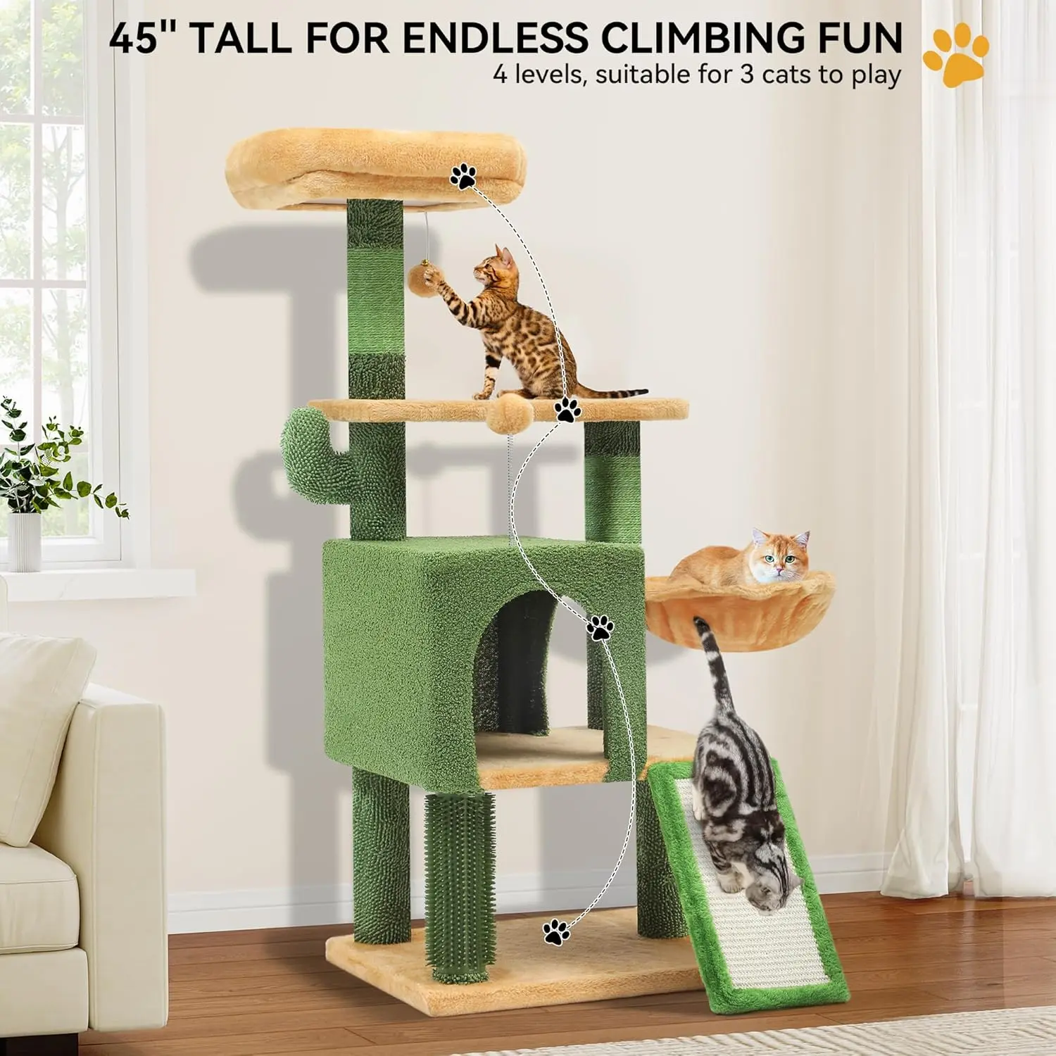 My kitty loves his cat tree! The 44â is the perfect size for my space. My kitty could hardly wait for me to put it together!