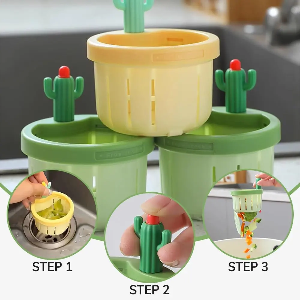 The multi-functional home use cactus sink draining basket filter net lifting basket offers large capacity for kitchen waste while preventing clogs and facilitating water filtration, satisfying all your kitchen sink needs