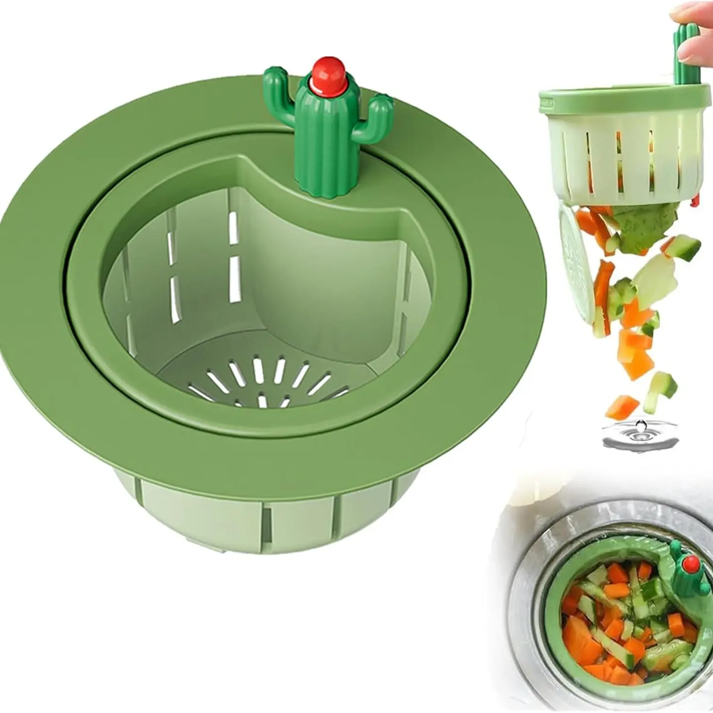 I bought this for my sink. It is awesome for my kids to dump their cereal in when they are finished. The milk goes thru the open slots, and then they can walk the mushy cereal over to the trash can and push the red button and it falls in the trash.