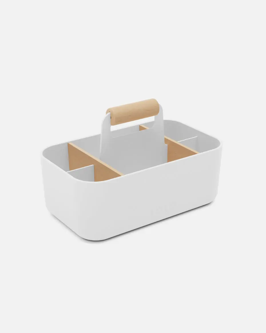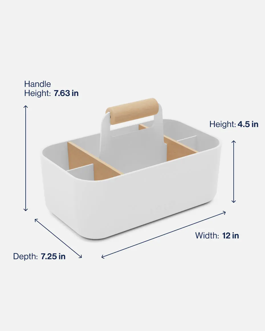 Get (and stay) organized with this chic, multipurpose caddy. The Caddy's modular design features 2 removable dividers giving you the option for 3 different configurations. Whether you're storing craft supplies, snacks, or diapers — we've got you.