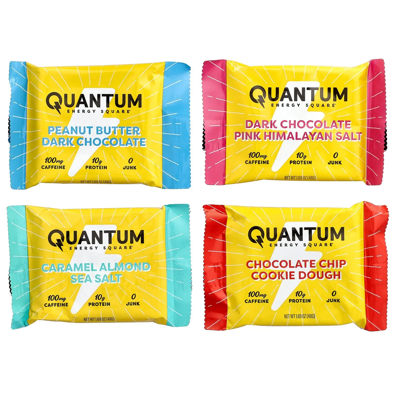 5. Quantum Energy Square Caffeine x Protein Snack, 8 Squares, 1.69 oz (48 g) Each