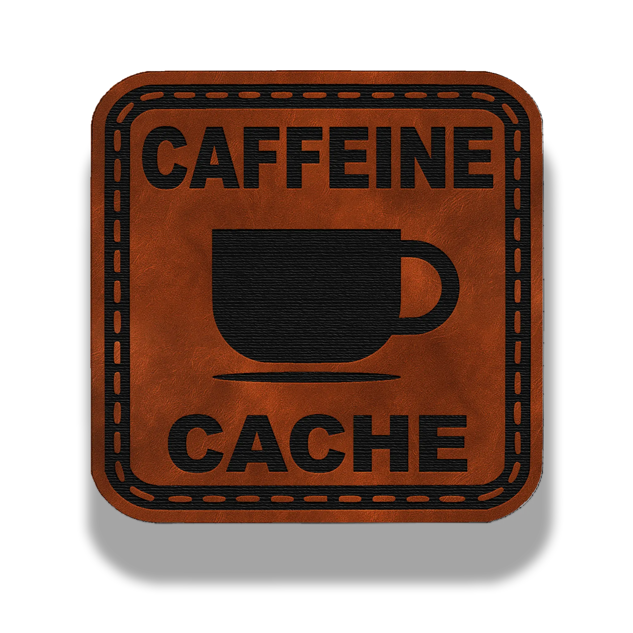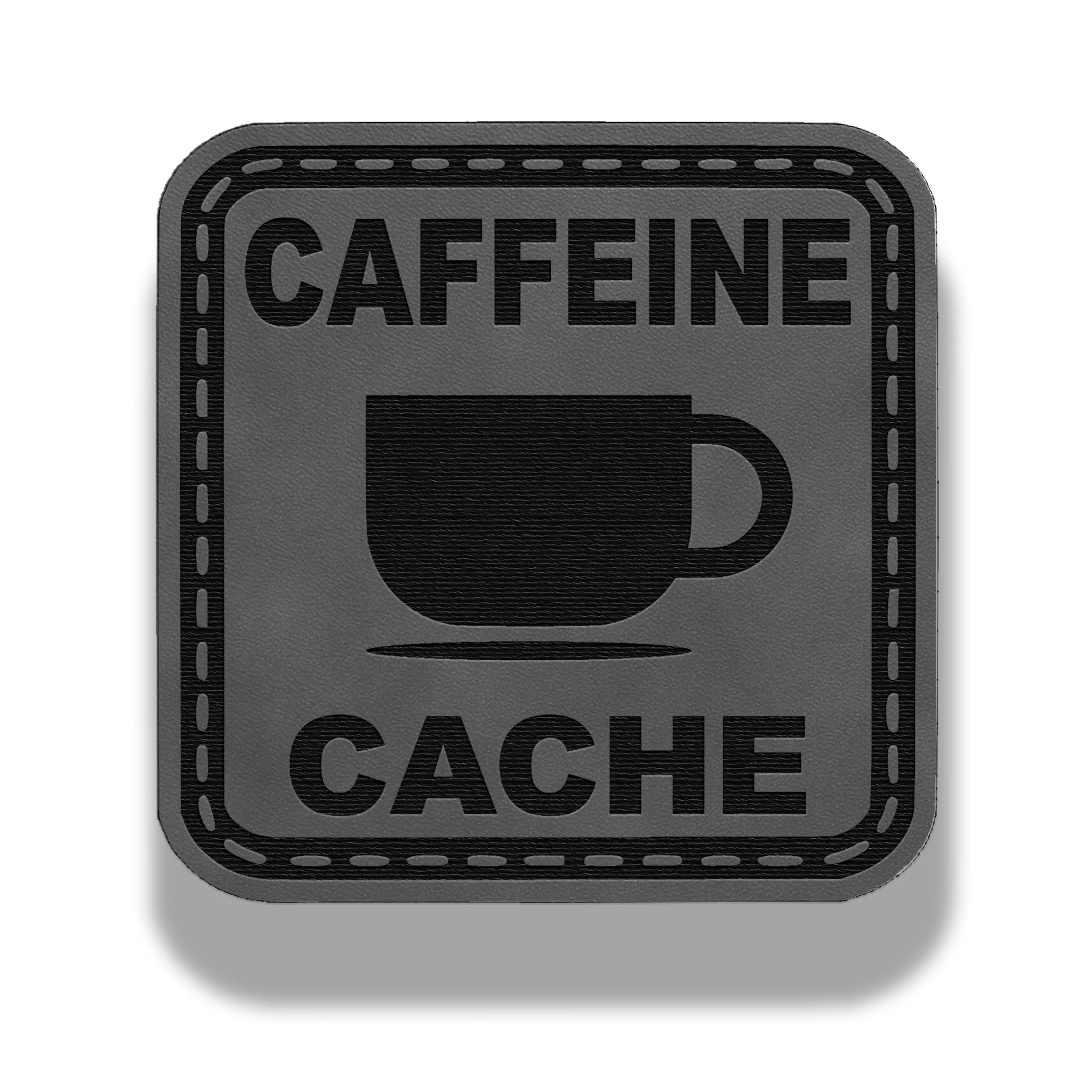 Stay fueled, stay sharp. The Caffeine Cache patch is laser-engraved on PatchBuilt’s Premier Leatherette with a bold coffee mug icon and clean block lettering — perfect for marking your brew stash or coffee-first mindset.