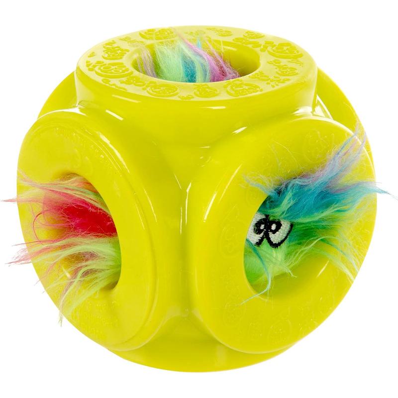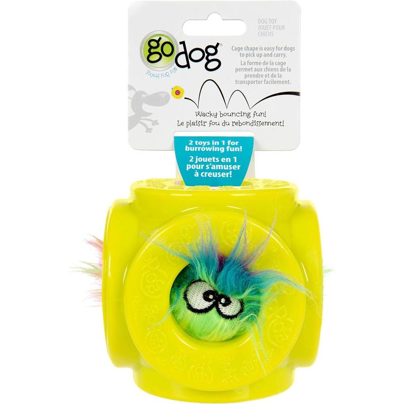 GoDog Cage Ball 2-in-1 Toy – Ready to double the fun! This clever two-in-one design features a tough, bouncy outer cage ball perfect for fetch, with a GoDog Furballz plush squeaker toy hidden inside. The wacky, unpredictable bounce keeps dogs guessing, while the open cage windows let pups squeak, chew, and burrow to get at the adorable plush for extra engagement.