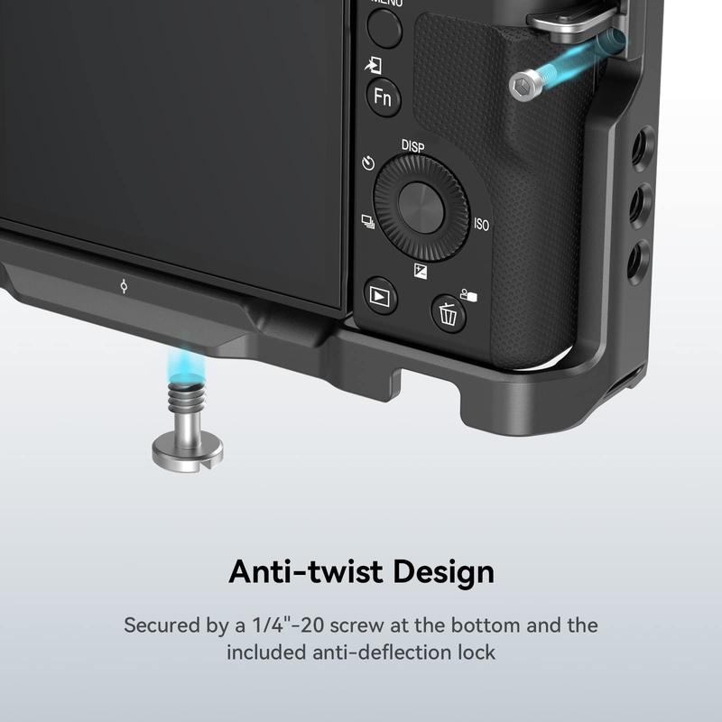 RELATED PRODUCTS: 3531, 3523, 3526, 3527, 3530, HTS2756, BUT2664, BUB2336, 3191Enlarged Hot Shoe Space: The new version of the cage enlarges the space around the camera hot shoe, and now you can use the cage together with the Microphone ECM-W2BT for Sony, Flash HVL-F32M or other accessories that require the use of the hot shoe on the top of the camera.Enlarged Battery Compartment Space: The space for the battery compartment at the bottom of the cage is enlarged, making it easier for you to change memory cards. The cage does not interfere with the use of buttons, card slots, battery compartments, and flip screens. There is a slot in the battery compartment to place the dummy battery cable. When using the dummy battery, the camera can also be placed flat on the table.Multiple Mounting Options: The cage has built-in multiple 1/4"-20 threaded holes, 3/8"-16 positioning holes for ARRI, which can be used with the Top Handle 1638, 1446, 1984 and 2165 for low-angle shooting; it can also be installed with a Power Bank Clip BUB2336 to fix the power bank near the camera for continuous power supply. There is a built-in cold shoe on the top and bottom of the cage, which can expand the Microphone 3468 and LED Video Light 3286 for a complete vlogging solution.Silicone Handle with Comfortable Grip: The cage has a built-in detachable silicone handle designed according to ergonomics. The cage is fixed by a 1/4"-20 screw at the bottom, and the camera can be double-fixed with the included anti-deflection lock to further prevent deflection.Quick Release Plate for Arca-Swiss: The quick release plate for Arca-Swiss at the bottom attaches directly to the tripod for Arca-Swiss type for quick switching between handheld, tripod and stabilizer shooting. The bottom threaded holes are designed for the quick release plate of the RS 3/RS 3 Pro/RS 2/RSC 2 stabilizer to improve the stabilizer shooting experience.Power Backup Solution: SmallRig NP-FW50 camera battery charger set is available now, two 1030mAh(Real) rechargeable batteries and a charger brings long battery life for your videos and photos shooting, if you need a sufficient power supply, please search SmallRig NP-FW50 Battery 3818